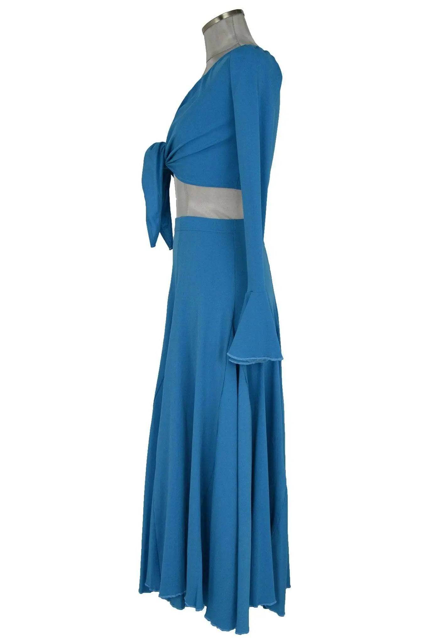 Scegli il Noleggio abito danza donna azzurro con top annodato per il tuo prossimo evento speciale e dona un tocco di autenticità e fascino senza tempo alla tua interpretazione.