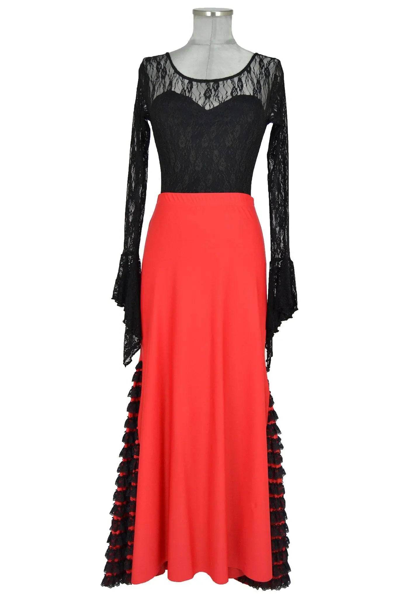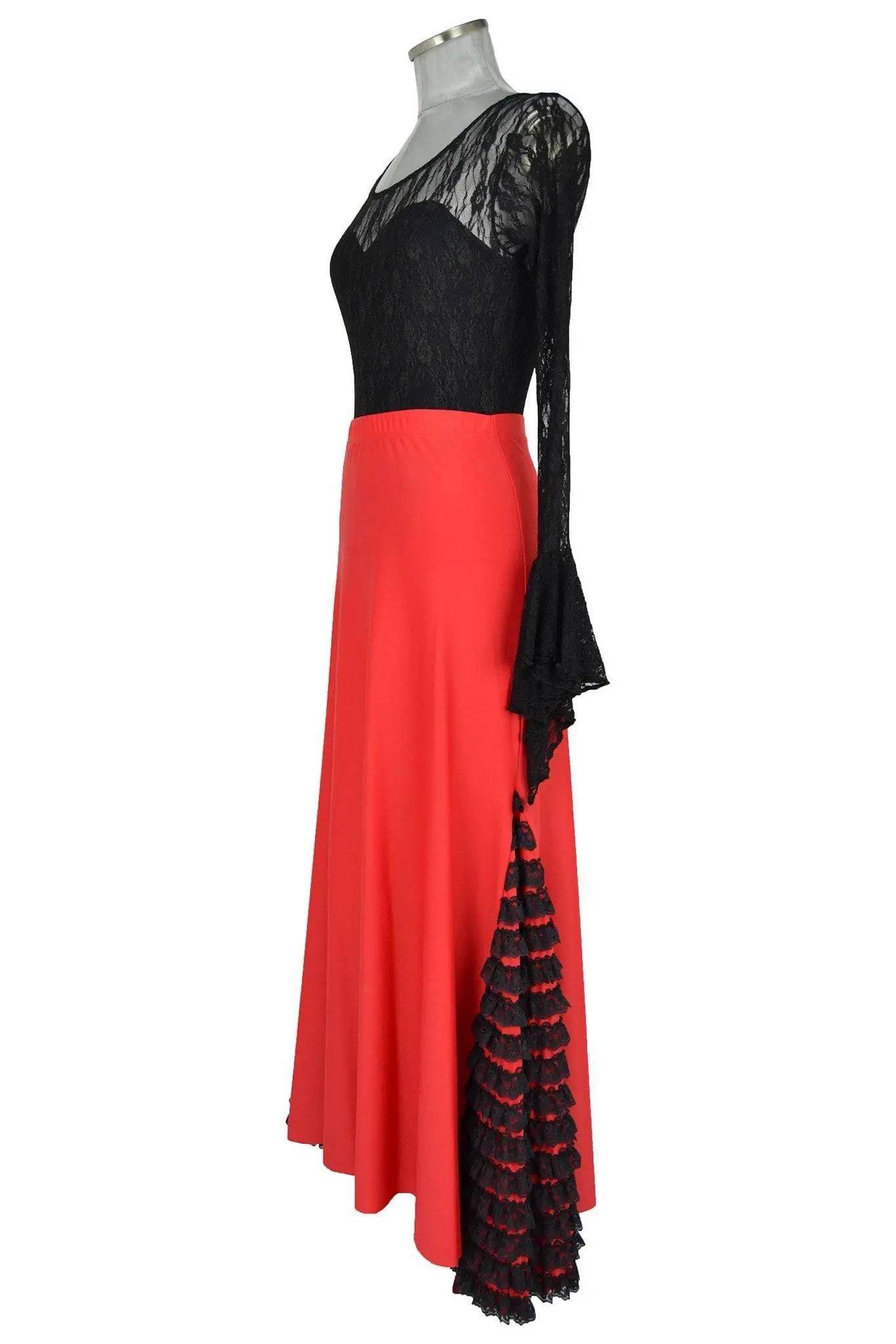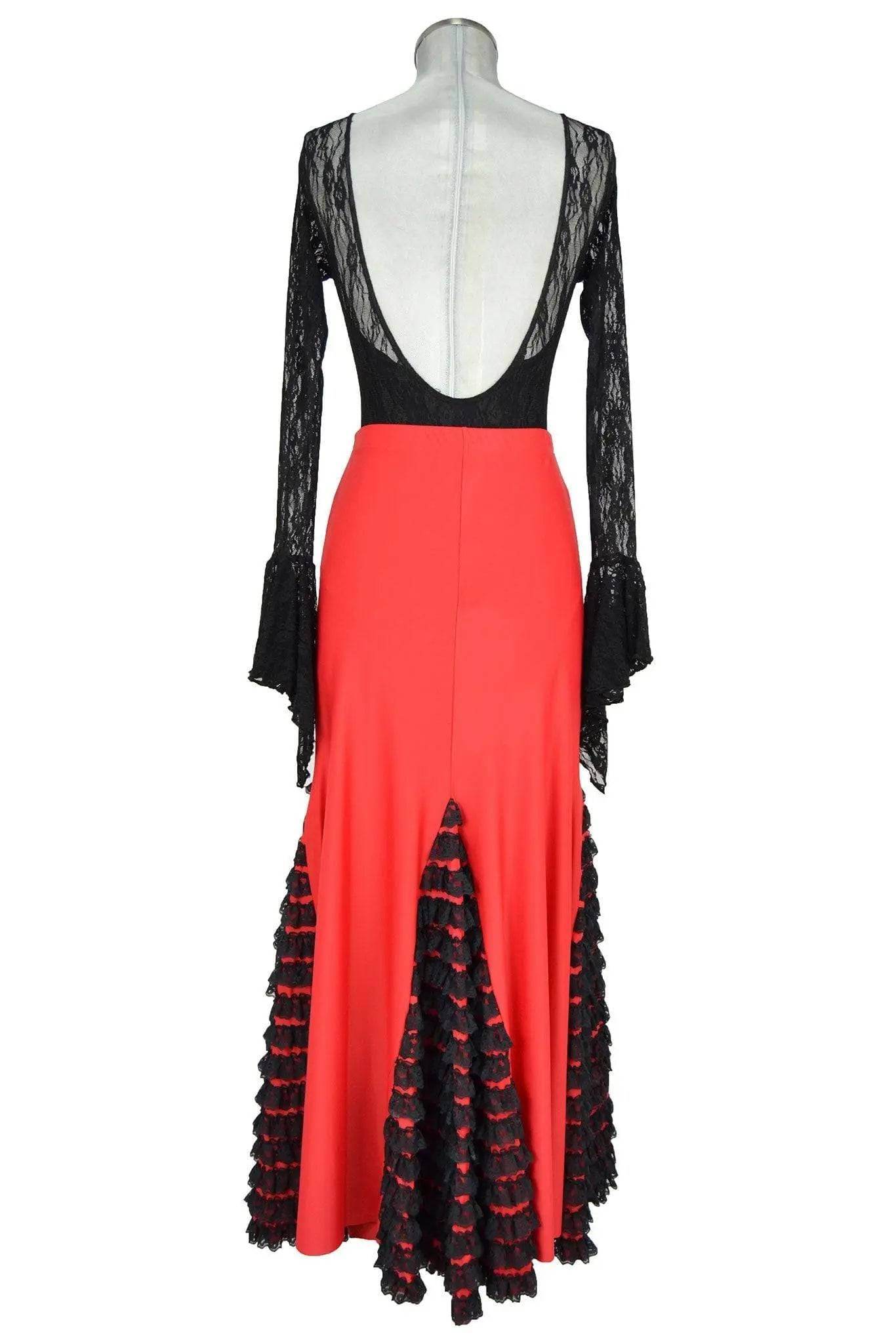 Noleggio abito donna flamenco rosso nero gonna a balze-danza