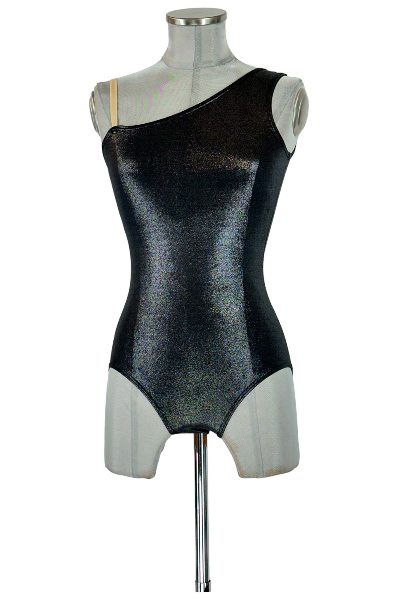 Noleggio Body Nero Asimmetrico Glitterato Donna - danza