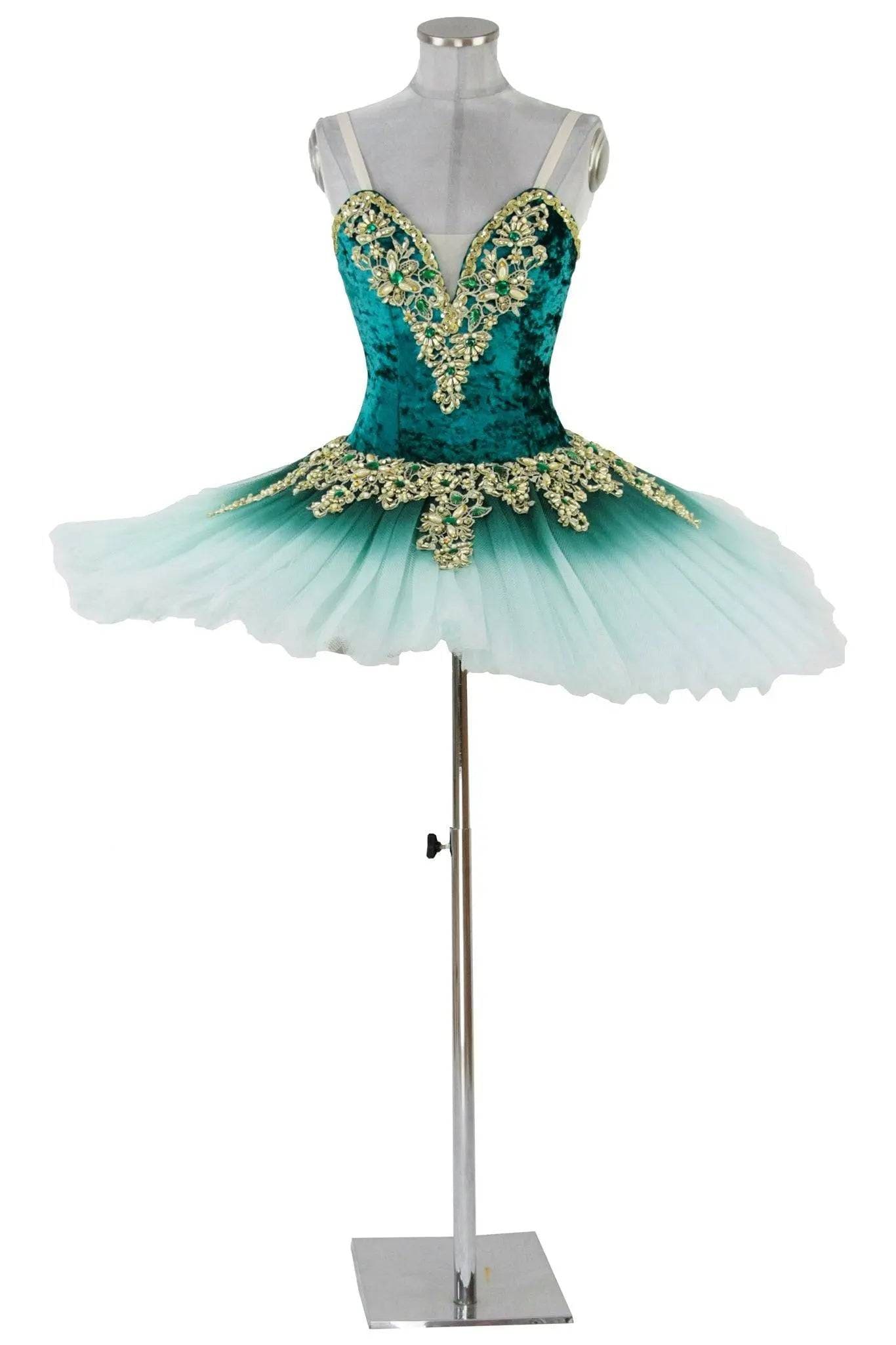 Un tutù davvero da togliere il fiato questo abbinamento tra velluto martellato verde, tulle sfumato, trecce e fiori di cristalli in oro e verde. Bello per fiabe (fate, principesse, ninfe dei fiori),  capolavori rivisitati, balli astratti, ma assolutamente perfetto per gli Smeraldi di “Jewels” di Balanchine.