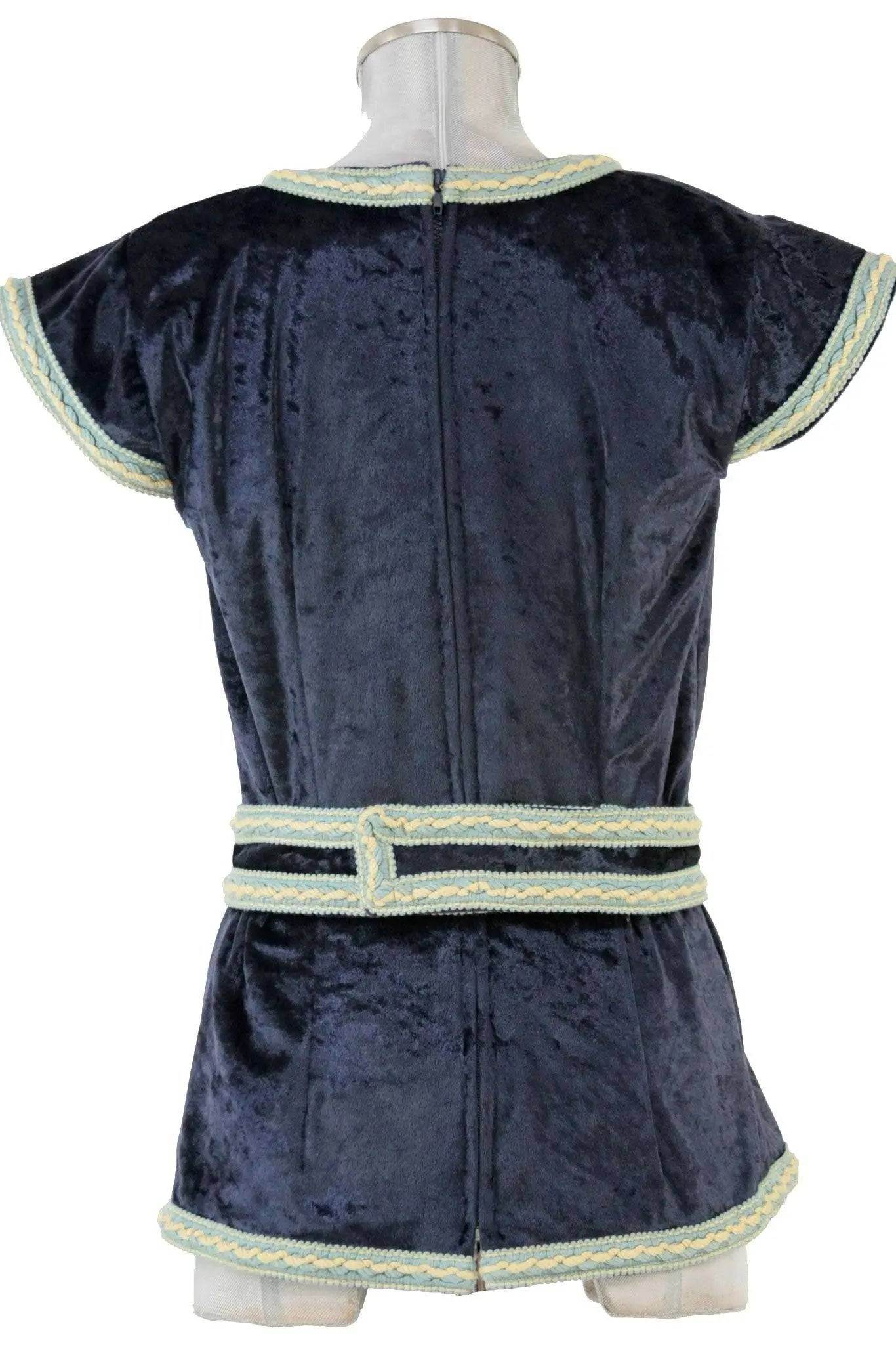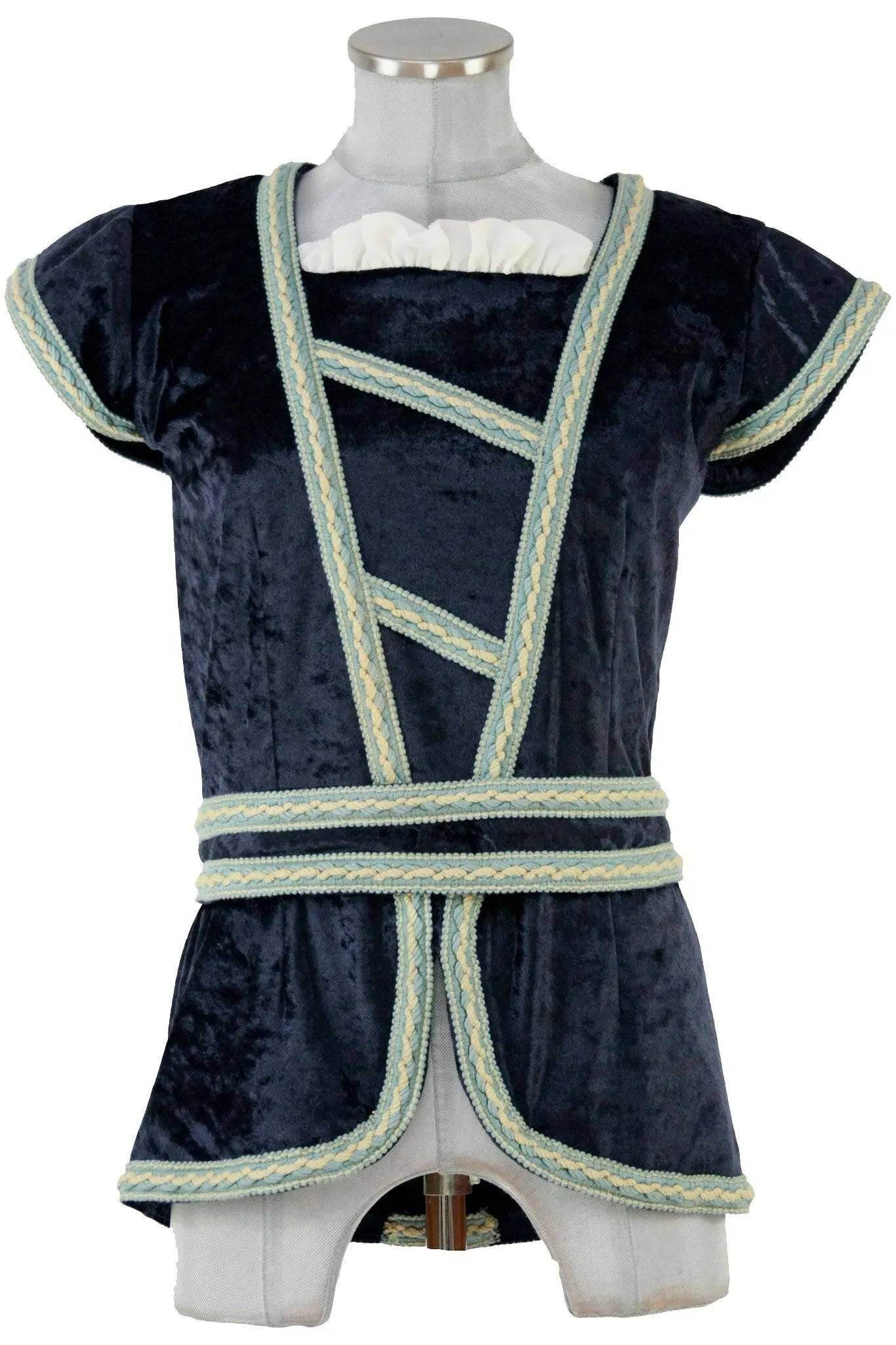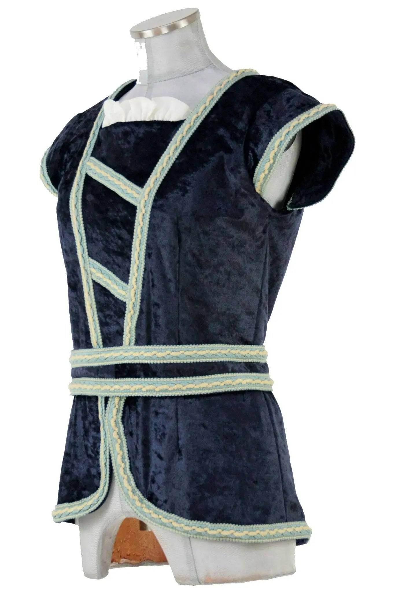 Giubba in velluto martellato a manica corta, che simula una giacchetta chiusa da cintura sopra un corpetto. Bellissime le passamanerie di sapore etnico. Si può indossare da sola per personaggi dell'antichità, in balletti come “Spartacus” o “La figlia del Faraone”, o su una maglia con maniche.