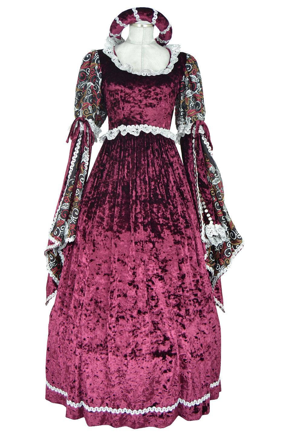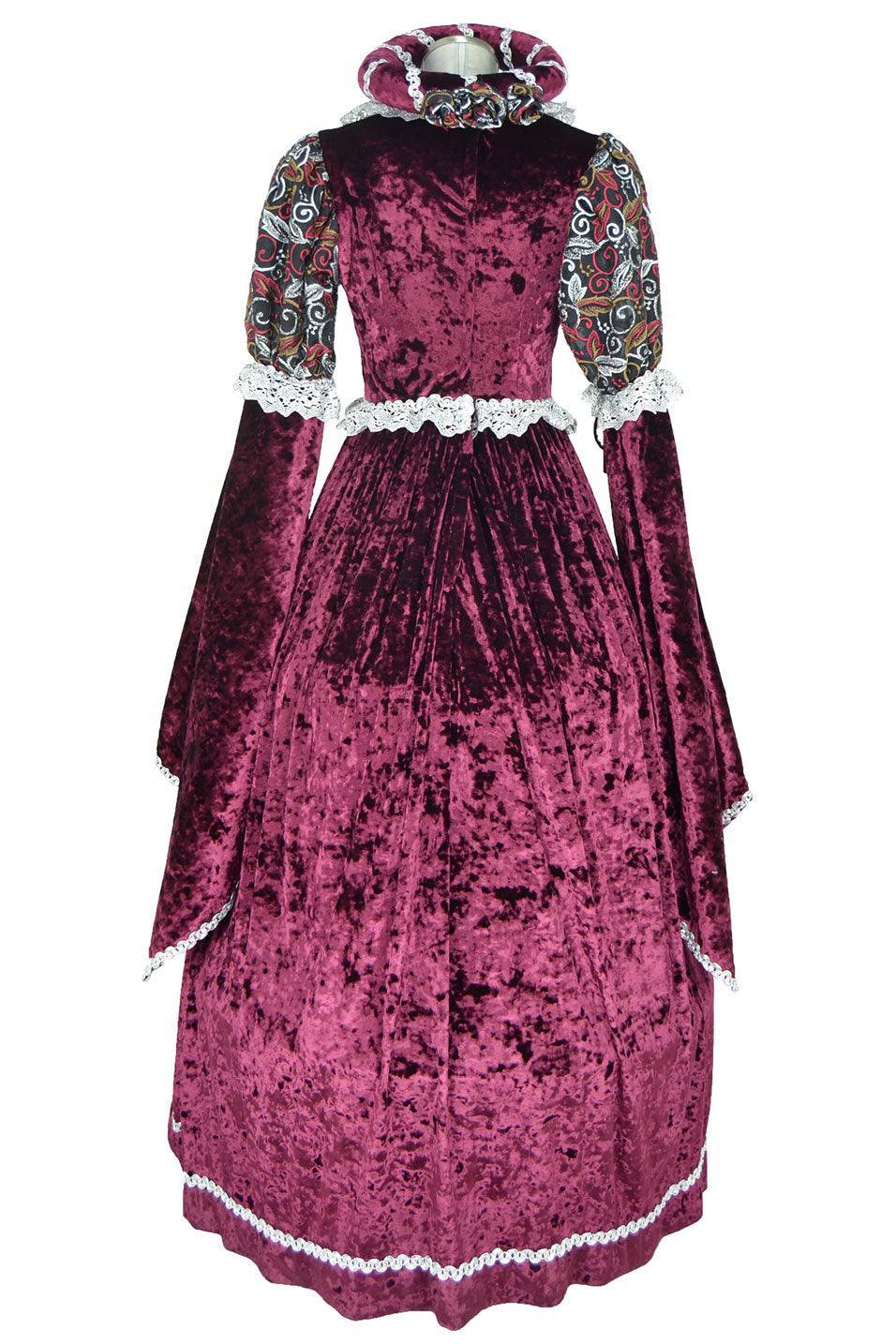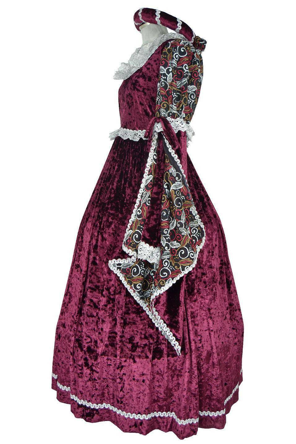 Noleggio Abito Rinascimentale donna in Velluto Borgogna, un costume elegante e ricercato, perfetto per donne che vogliono immergersi nell’atmosfera delle rievocazioni storiche o partecipare a feste a tema in grande stile. Realizzato in pregiato velluto borgogna, questo vestito trasuda fascino d’epoca ed è rifinito con dettagli elaborati che richiamano l’estetica rinascimentale, rendendolo una scelta perfetta per chi cerca un outfit d’effetto e autentico.