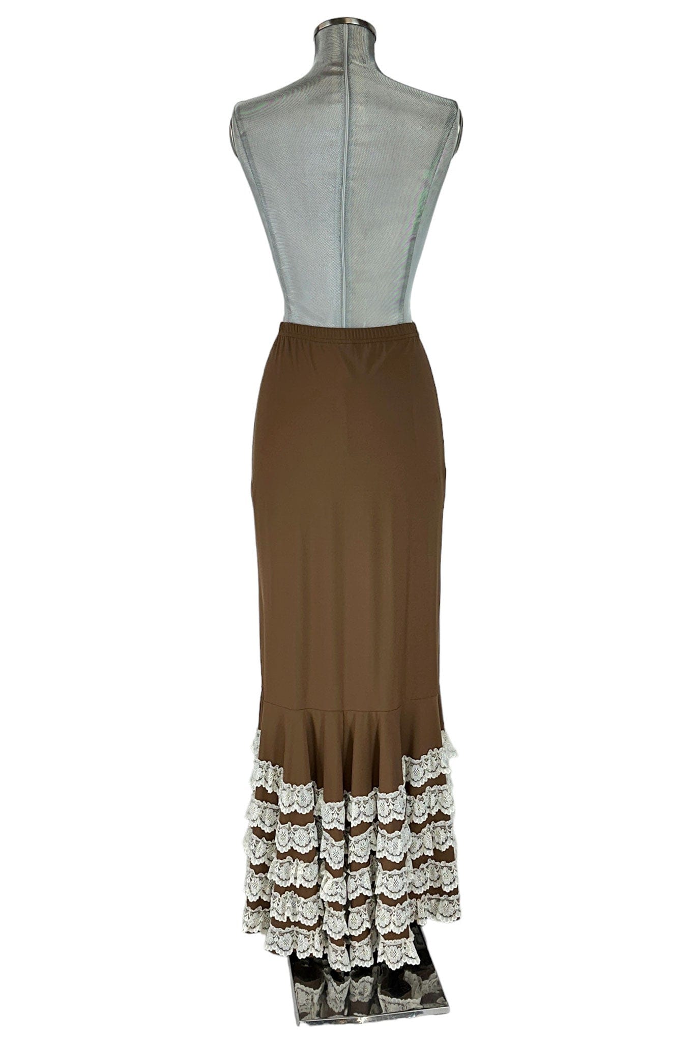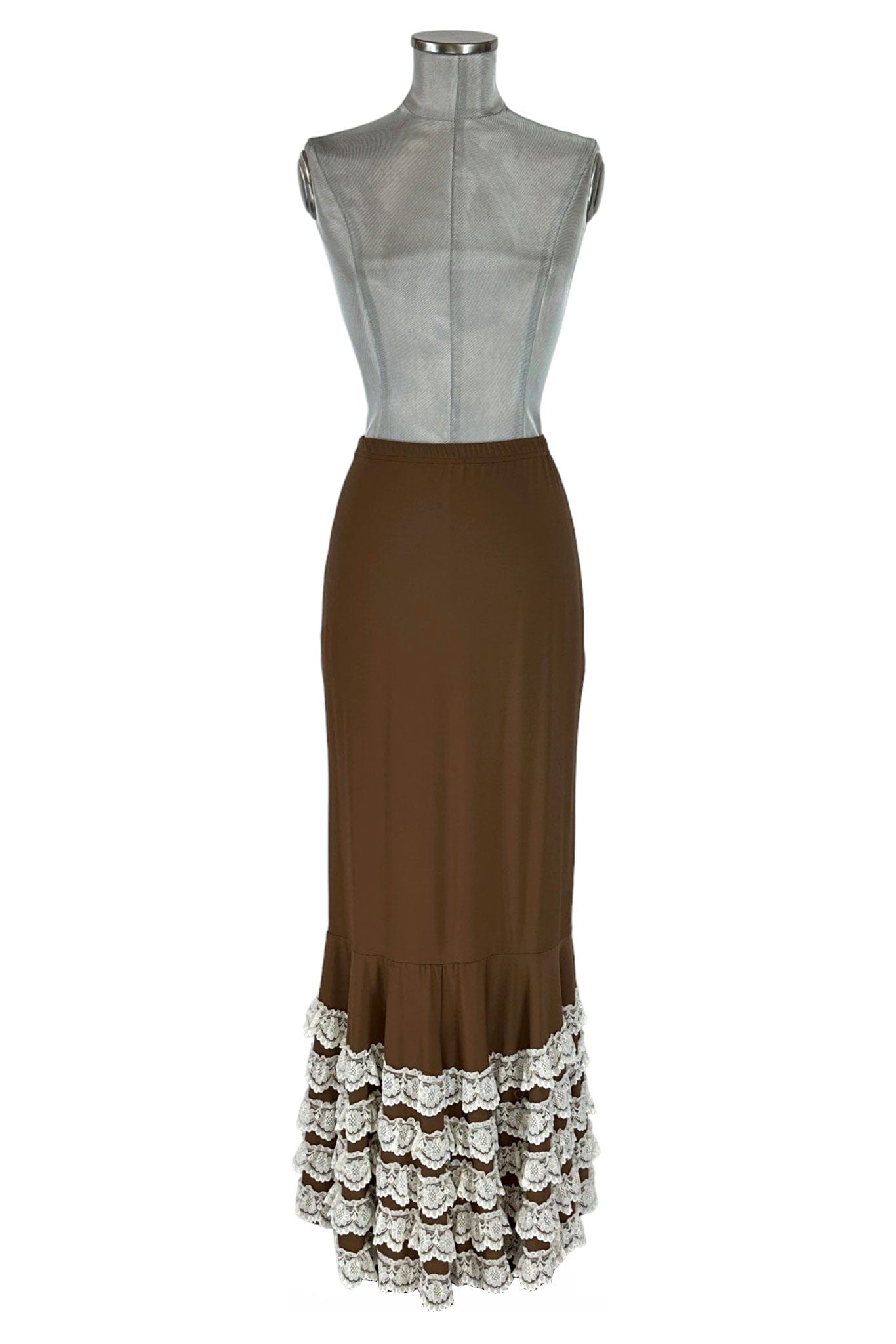 Noleggio Gonna Marrone Donna con Balze in Pizzo Bianco