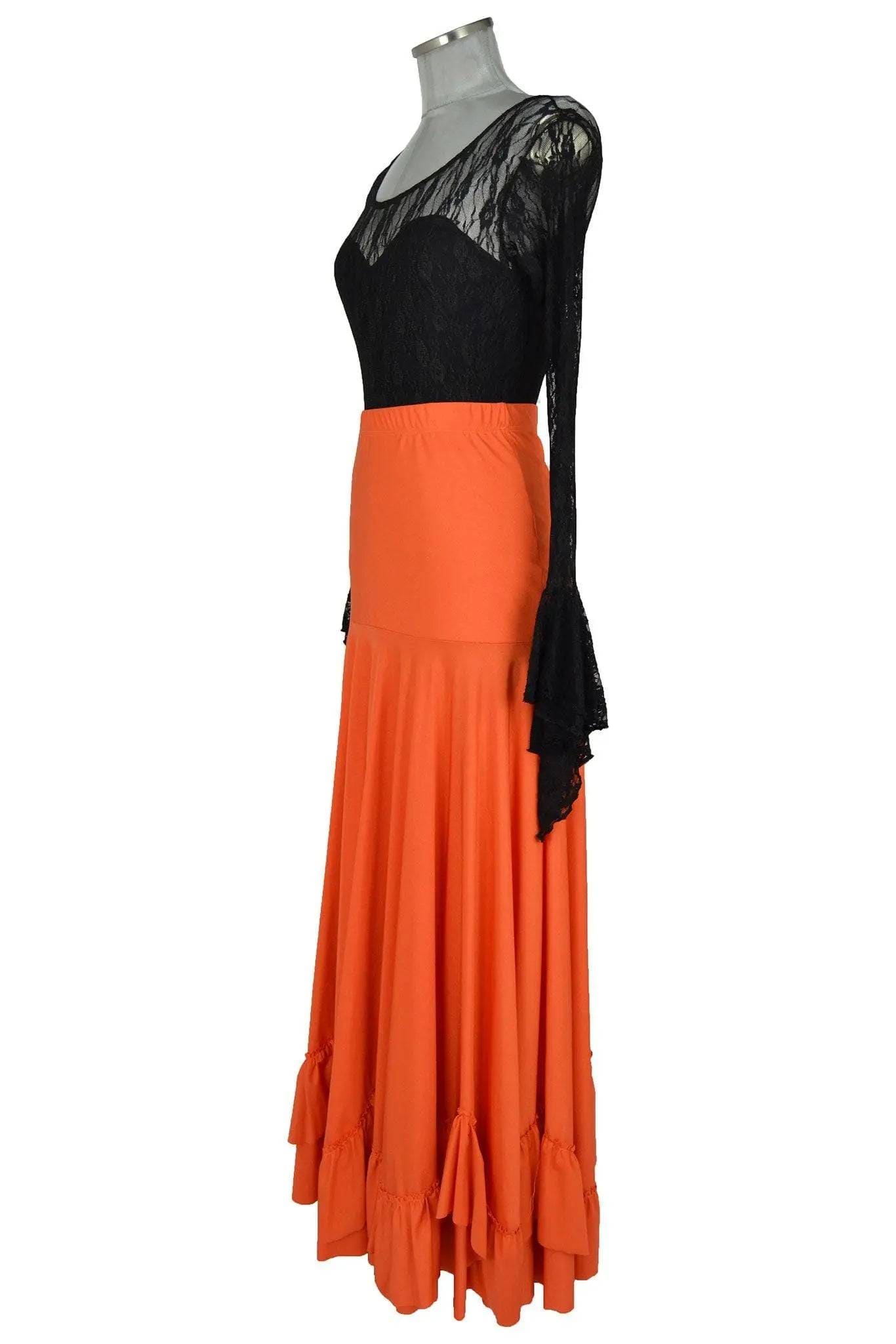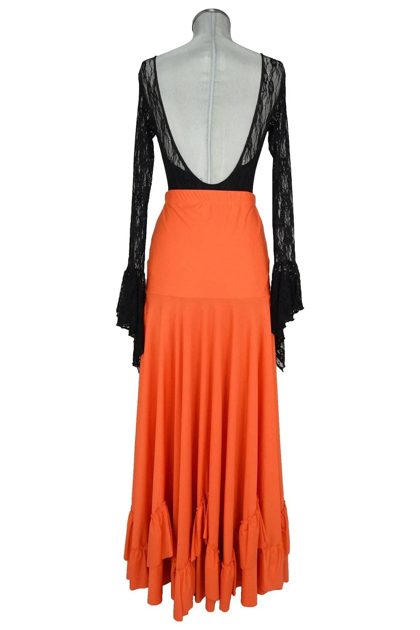 Noleggio abito elegante nero e arancione con pizzo per Halloween