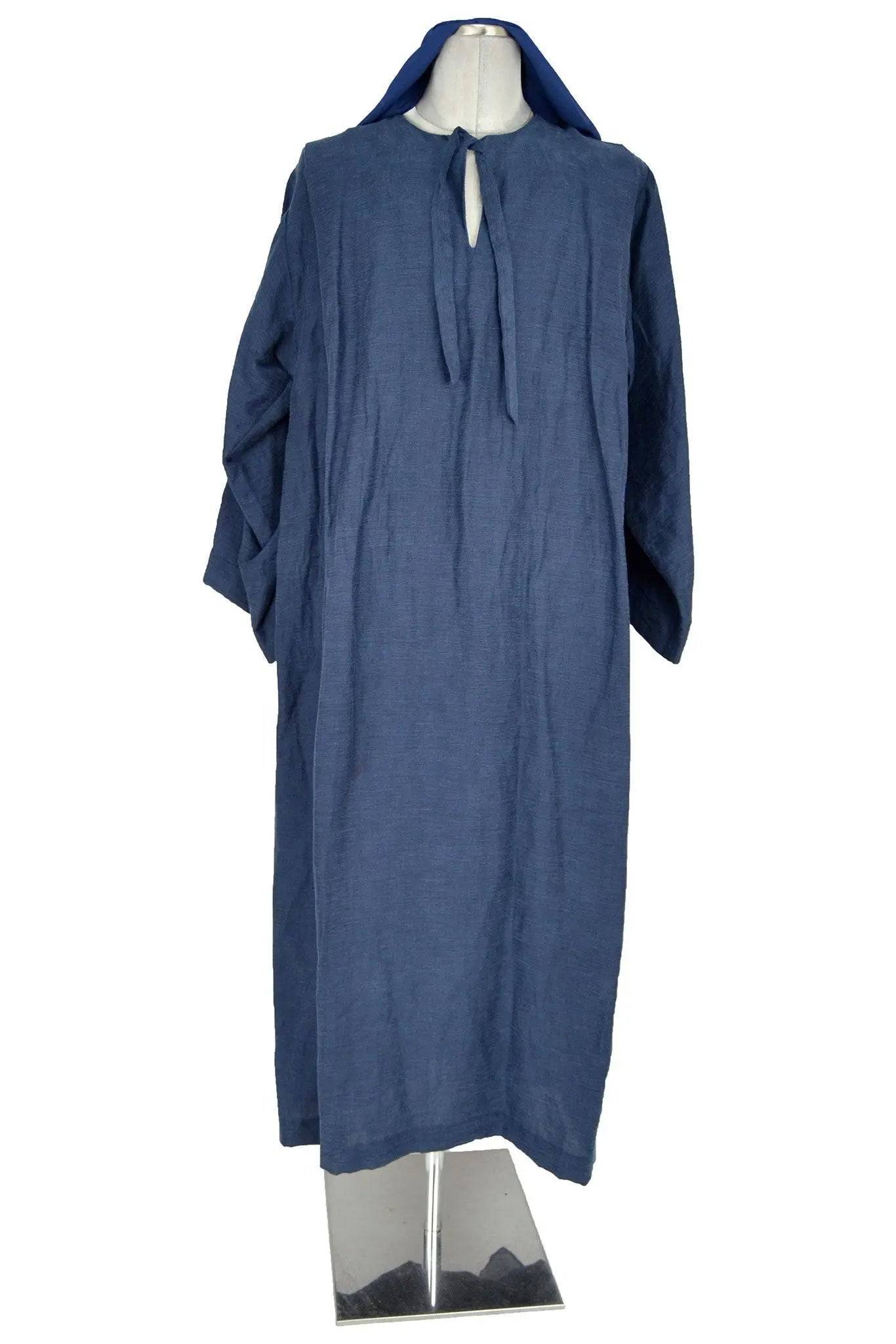 Tunica lunga in tessuto a trama irregolare tipo shantung, con scollo annodato e manica lunga. Ottima base per costumi ispirati all'antichità, sia occidentali sia orientali (presepe vivente ecc.), e al Medioevo; tuttavia si presta anche a figure dei secoli più recenti, come carcerate, novizie, operaie.