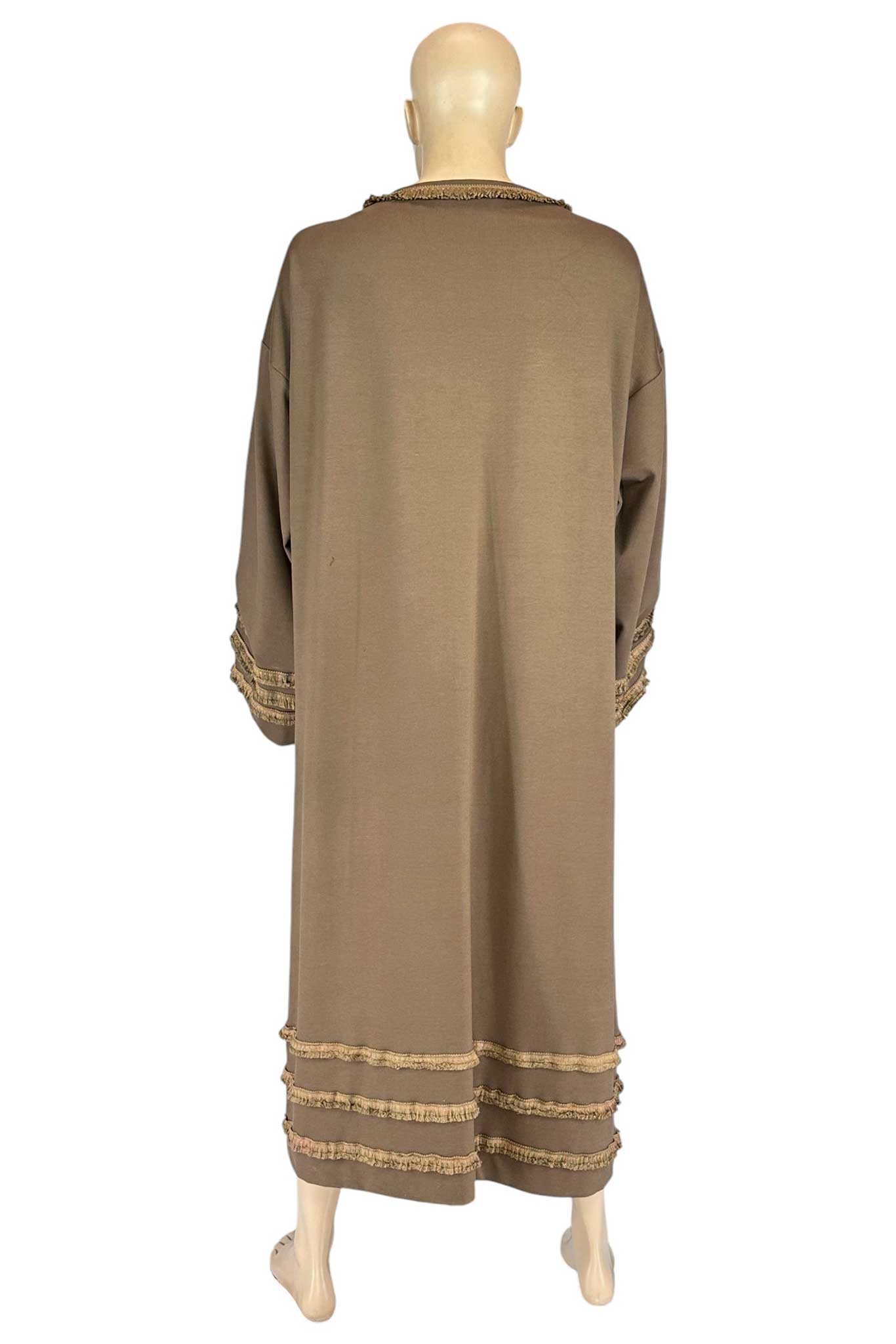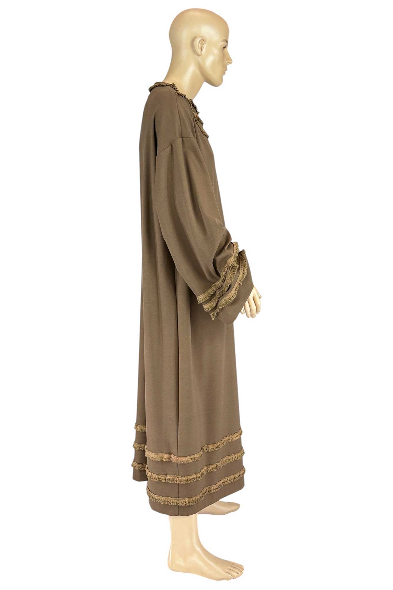 La linea ampia e fluida del noleggio Tunica storica uomo marrone per rievocazioni e teatro garantisce grande libertà di movimento e comfort, mentre le finiture accurate offrono un tocco di raffinatezza senza tempo. Le maniche lunghe con decori in rilievo e le balze in fondo alla tunica richiamano lo stile cerimoniale tipico delle vesti maschili dell’antichità. È una soluzione perfetta per chi cerca autenticità scenica senza rinunciare a qualità e cura nei dettagli.