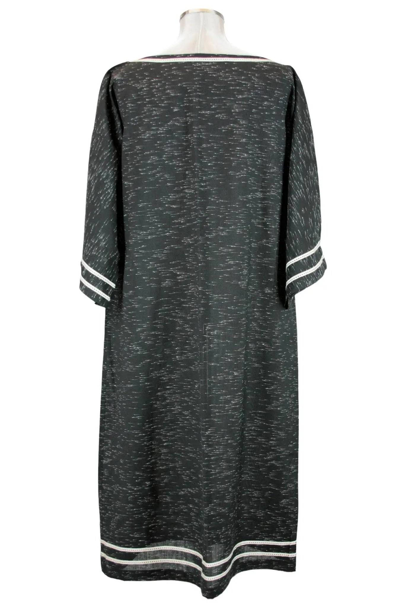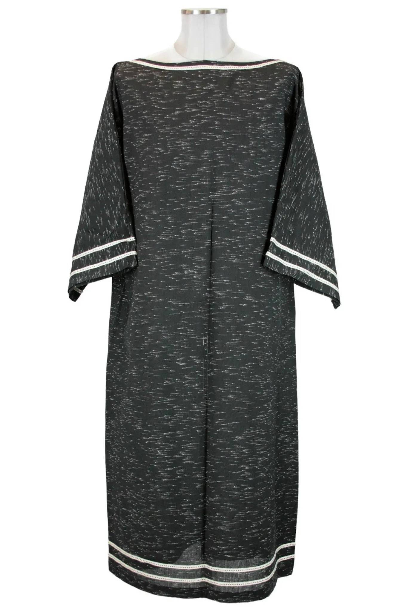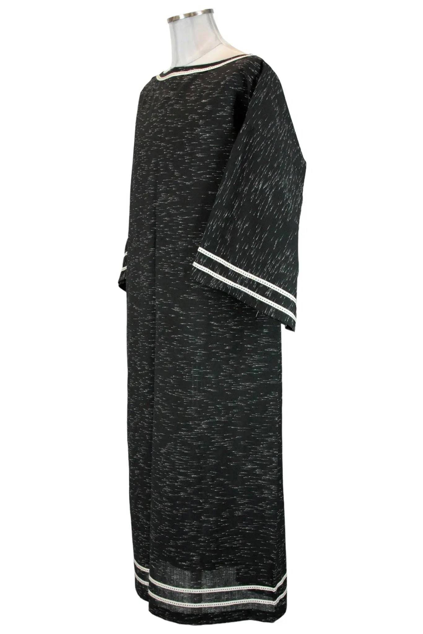 Realizzato in tessuto di alta qualità, l'abito offre comfort e durabilità, permettendo di indossarlo per lunghe ore senza alcun disagio. La tunica presenta un taglio ampio che si adatta a diverse conformazioni fisiche, rendendola adatta sia per uomini che per donne. I dettagli bianchi lungo i bordi delle maniche e dell'orlo aggiungono un tocco di distinzione e raffinatezza al capo, esaltando la semplicità del design complessivo.