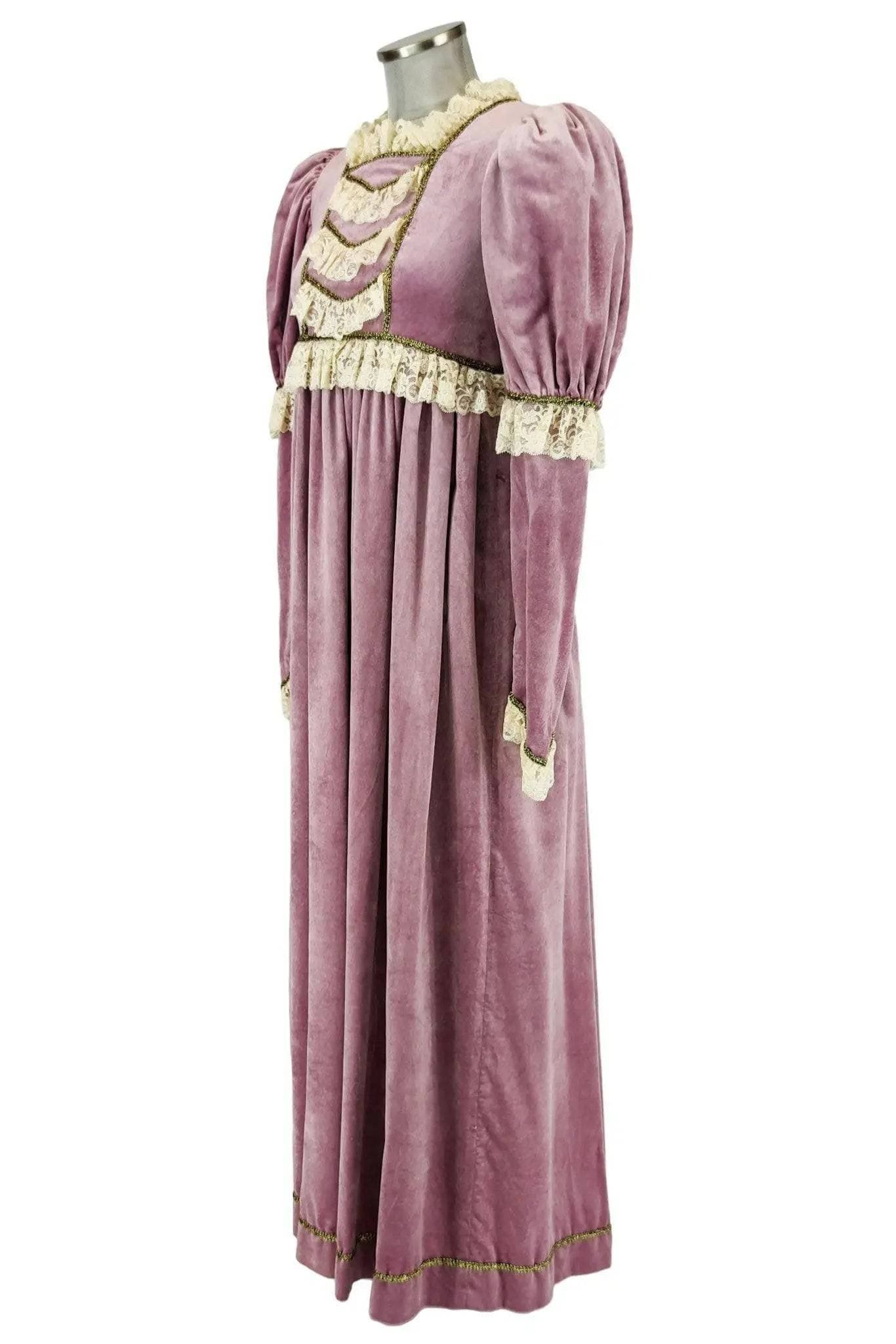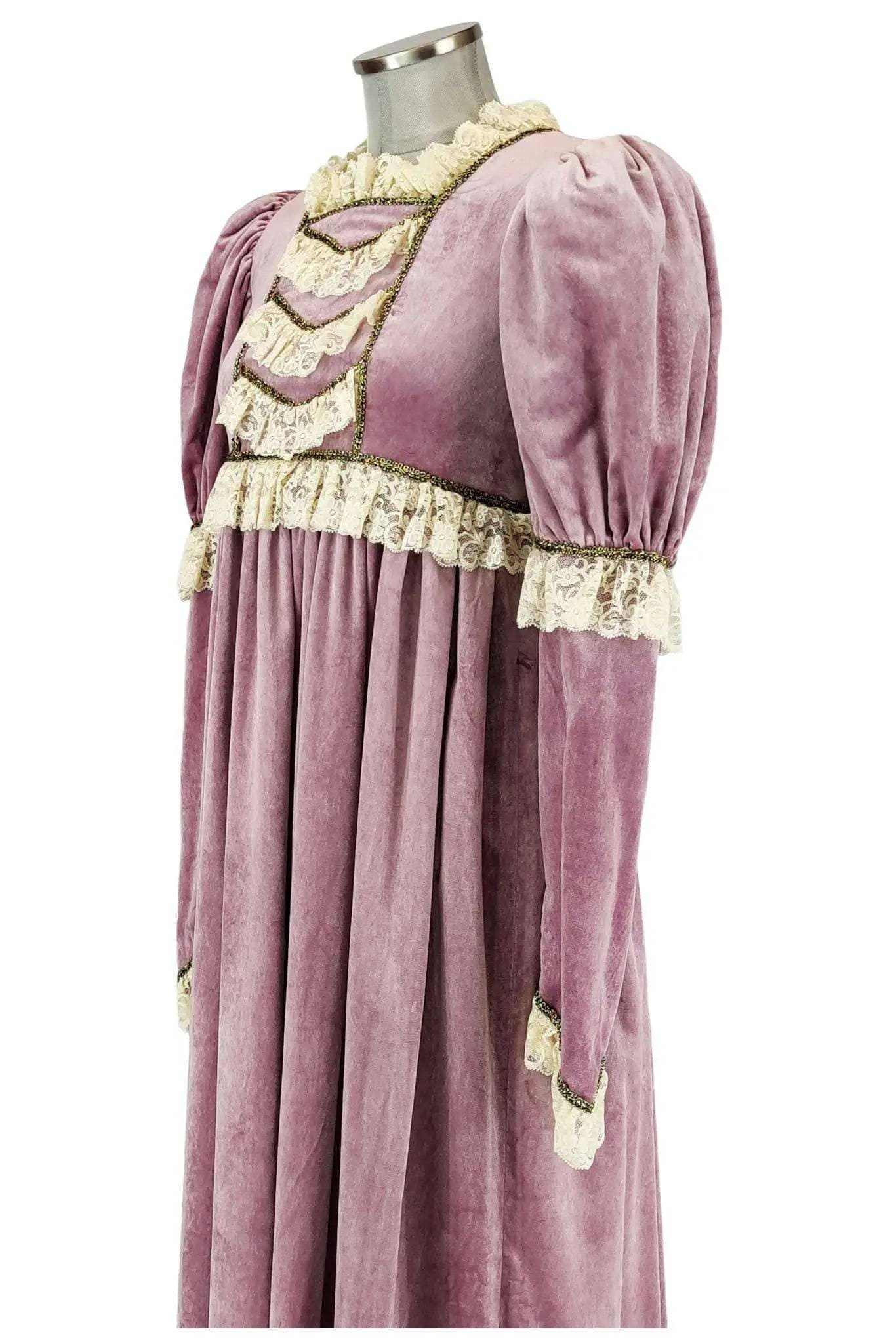 Noleggio Abito Storico Donna in Velluto Rosa con Pizzo Elegante