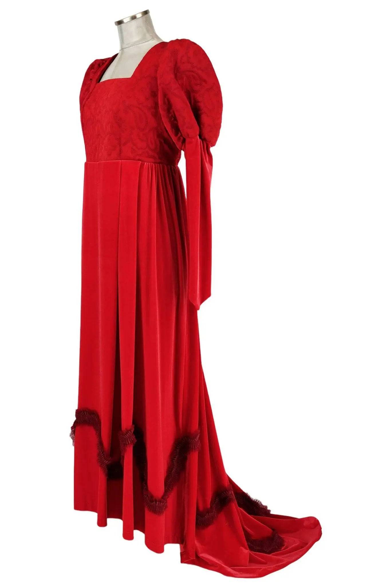 L'abito presenta maniche lunghe e ampie, un busto aderente e una gonna fluente, che conferiscono un tocco di grazia e maestosità. I dettagli intricati e le rifiniture curate fanno di questo abito una scelta perfetta per chi cerca autenticità storica e un'eleganza senza tempo. Indossando il nostro Noleggio abito donna medievale rosso - eleganza storica, sarai pronta a incantare tutti con il tuo fascino e la tua eleganza.