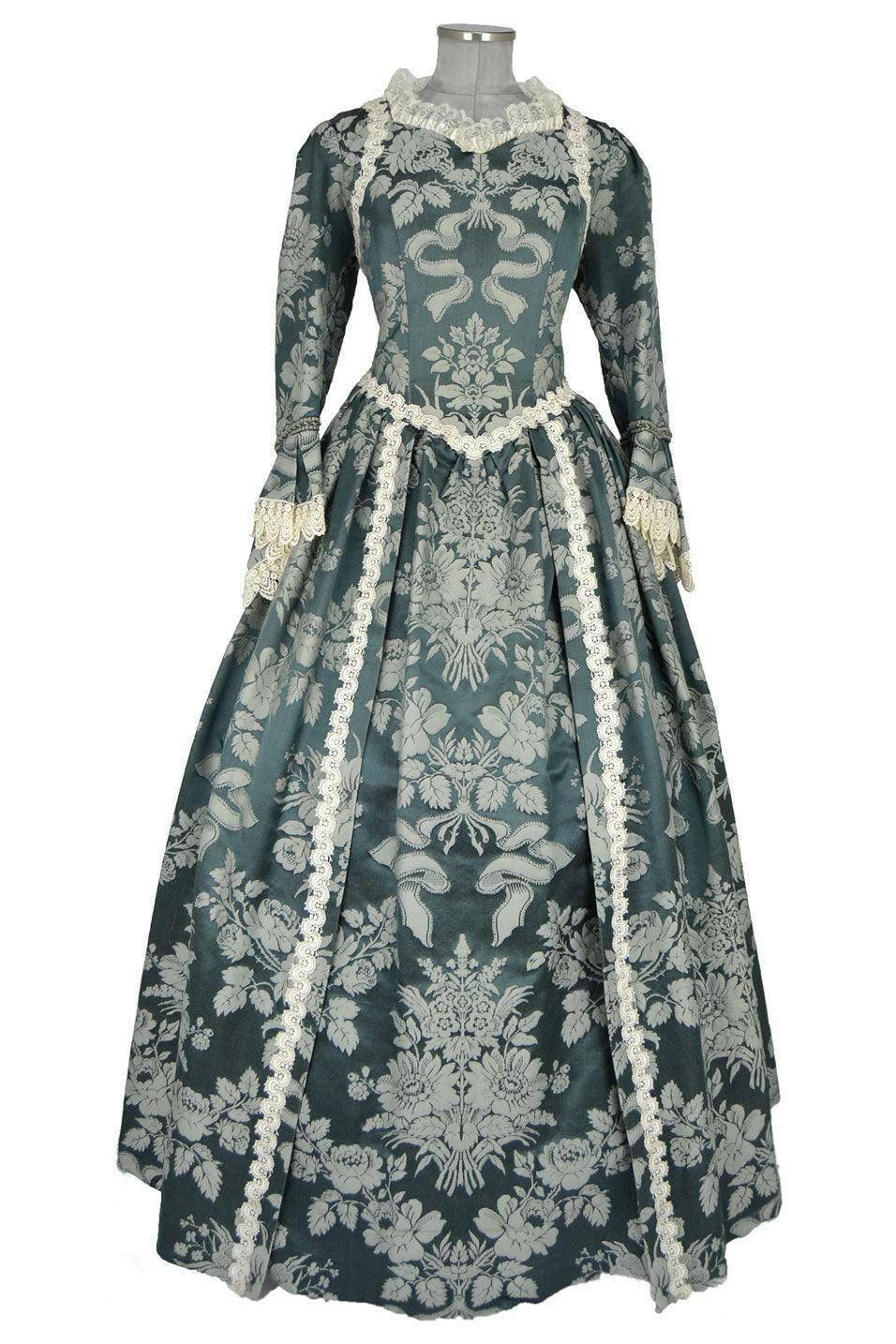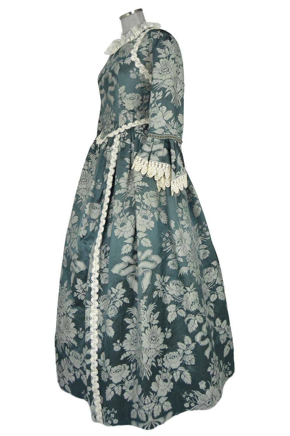Noleggio Abito Storico Donna Barocco Verde in Broccato e Pizzo - Carnevale