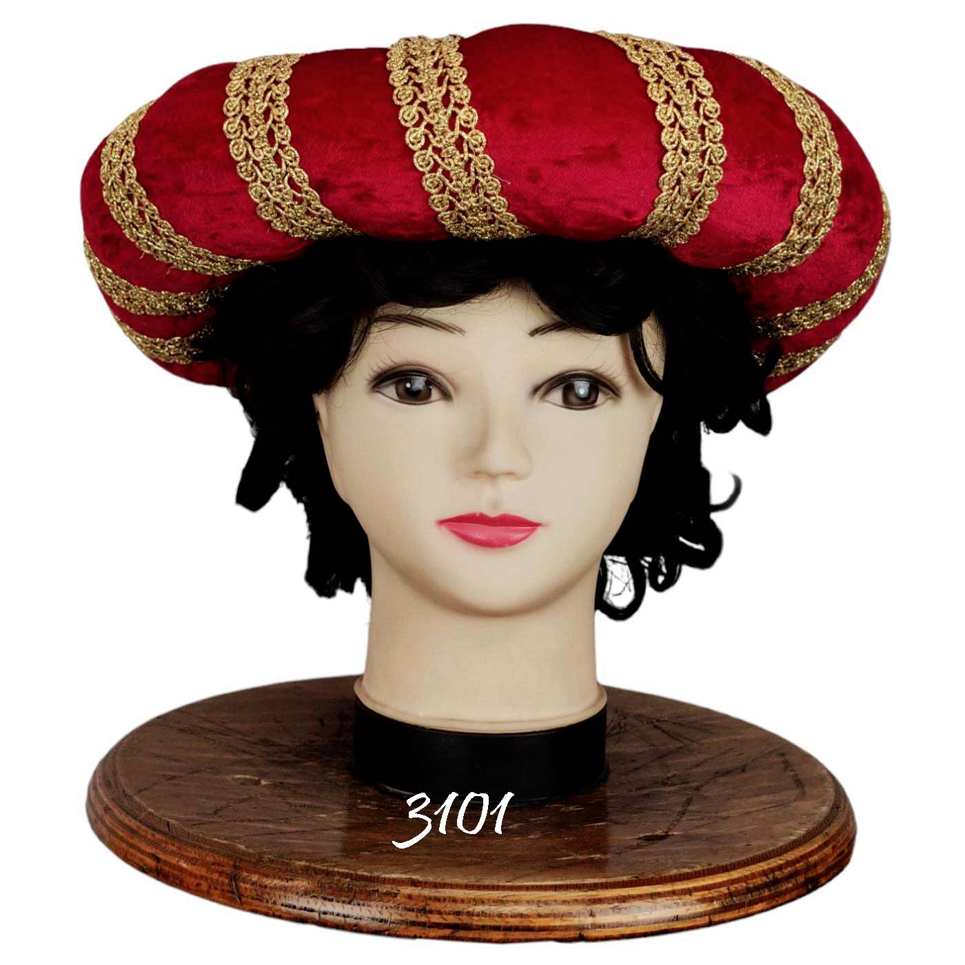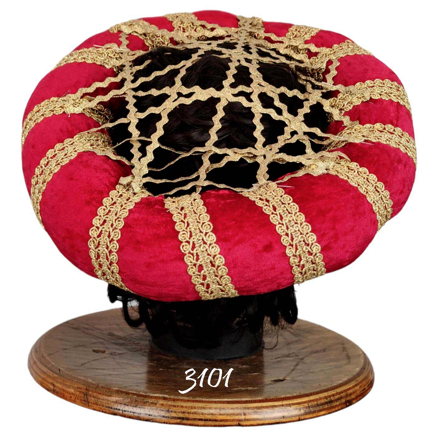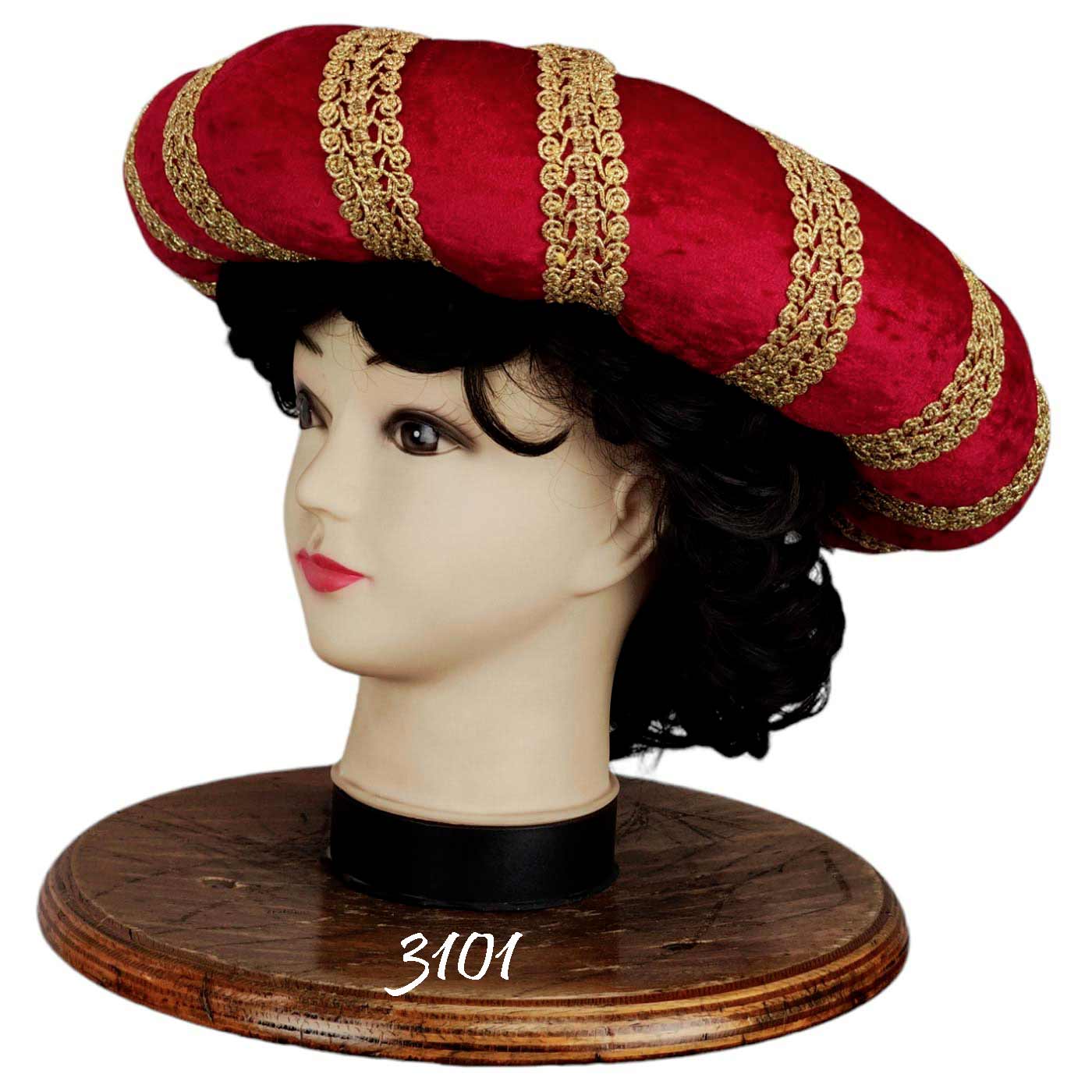Noleggio Copricapo storico donna in velluto rosso con decorazioni dorate