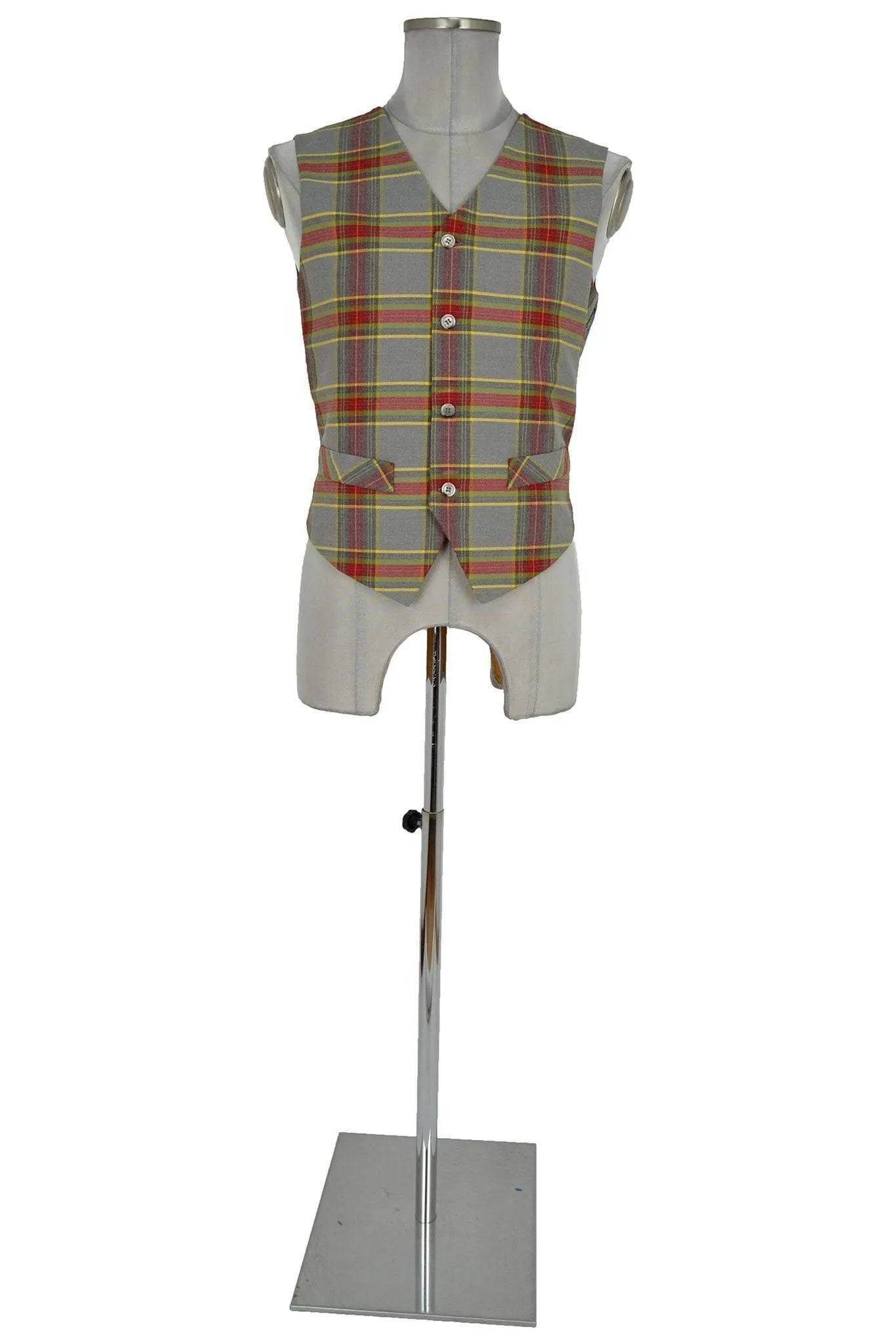 Gilet in bellissima stoffa tartan multicolore a fondo grigio, da indossare da solo oppure con giacca grigia; con quattro bottoncini e finti taschini; interessante per interpretare personaggi di fine '800 o fine e metà '900, da Sherlock Holmes a Clark Kent, dagli scienziati ai principi inglesi in borghese.