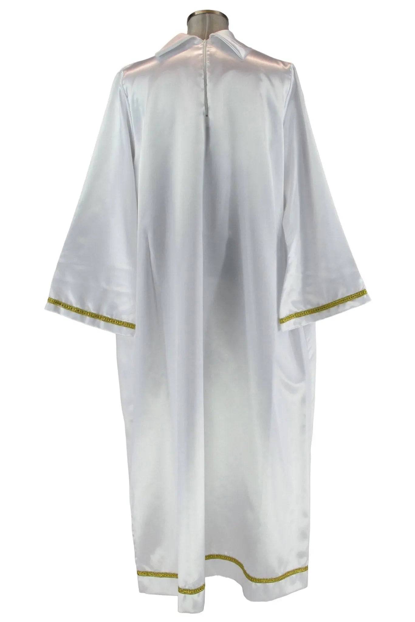 Prenota ora il tuo Noleggio tunica unisex da angelo in raso bianco e vivi le tue celebrazioni con eleganza e devozione. Questa tunica sarà il complemento perfetto per rendere ogni evento sacro un'esperienza indimenticabile. La sua semplicità e purezza trasmetteranno un messaggio di pace e spiritualità a tutti i presenti.