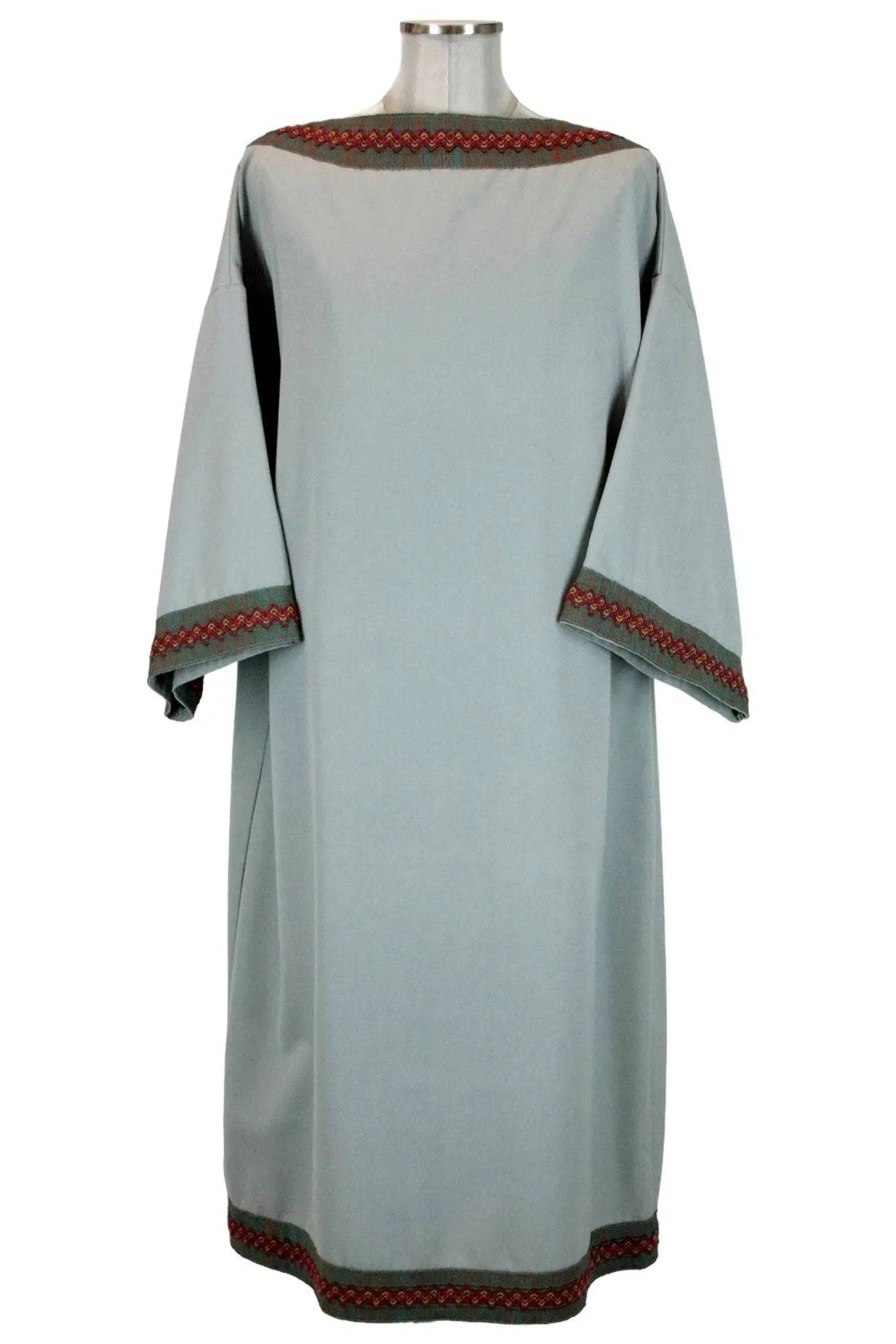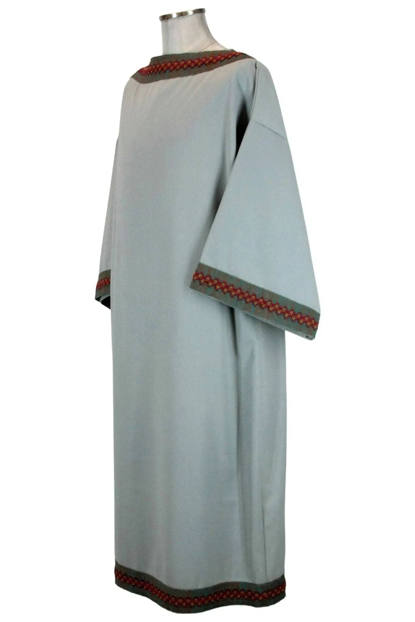 Noleggio tunica unisex azzurro polvere con bordure - rievocazioni ###