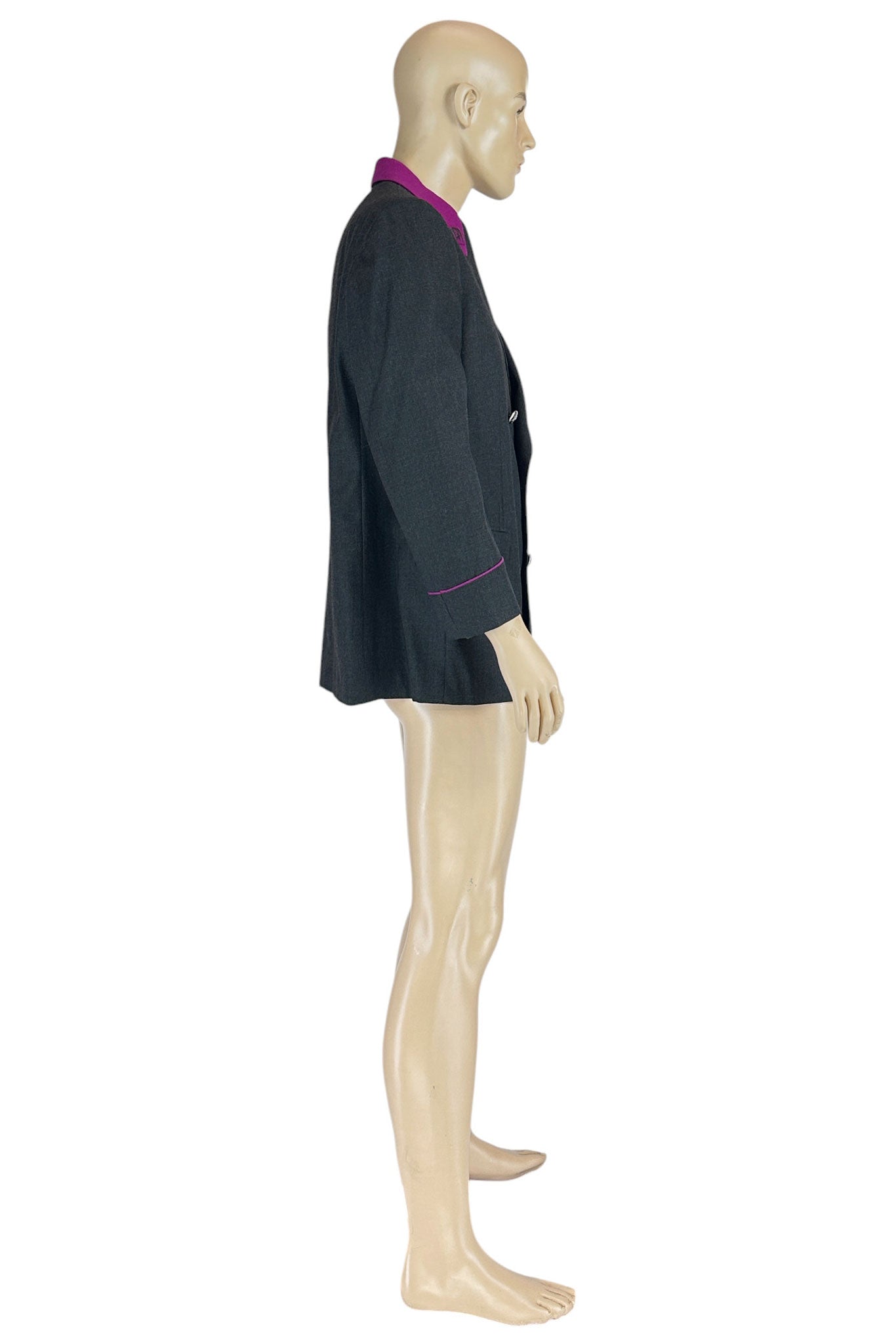 Noleggio Giacca uomo doppiopetto grigia con profili viola