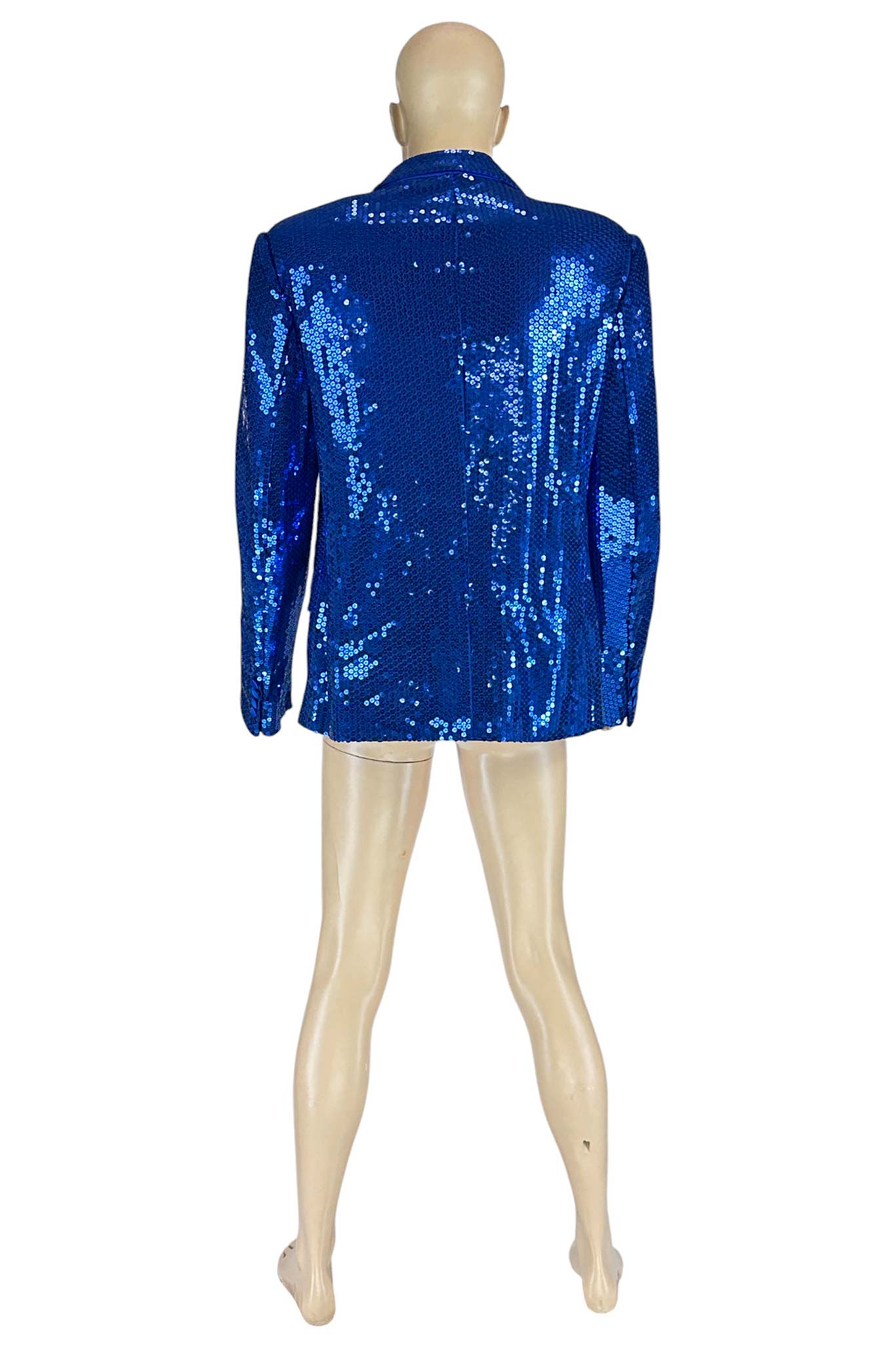 Lasciati conquistare dall’effetto scenico del Noleggio giacca uomo blu paillettes per eventi scenici, un capo spettacolare pensato per trasformare ogni tua esibizione in un momento da ricordare. Questa giacca da uomo in tessuto brillante, interamente ricoperta di paillettes blu elettrico, è ideale per spettacoli teatrali, show televisivi, cabaret, party a tema e performance sul palco dove la luce deve riflettersi su ogni movimento.