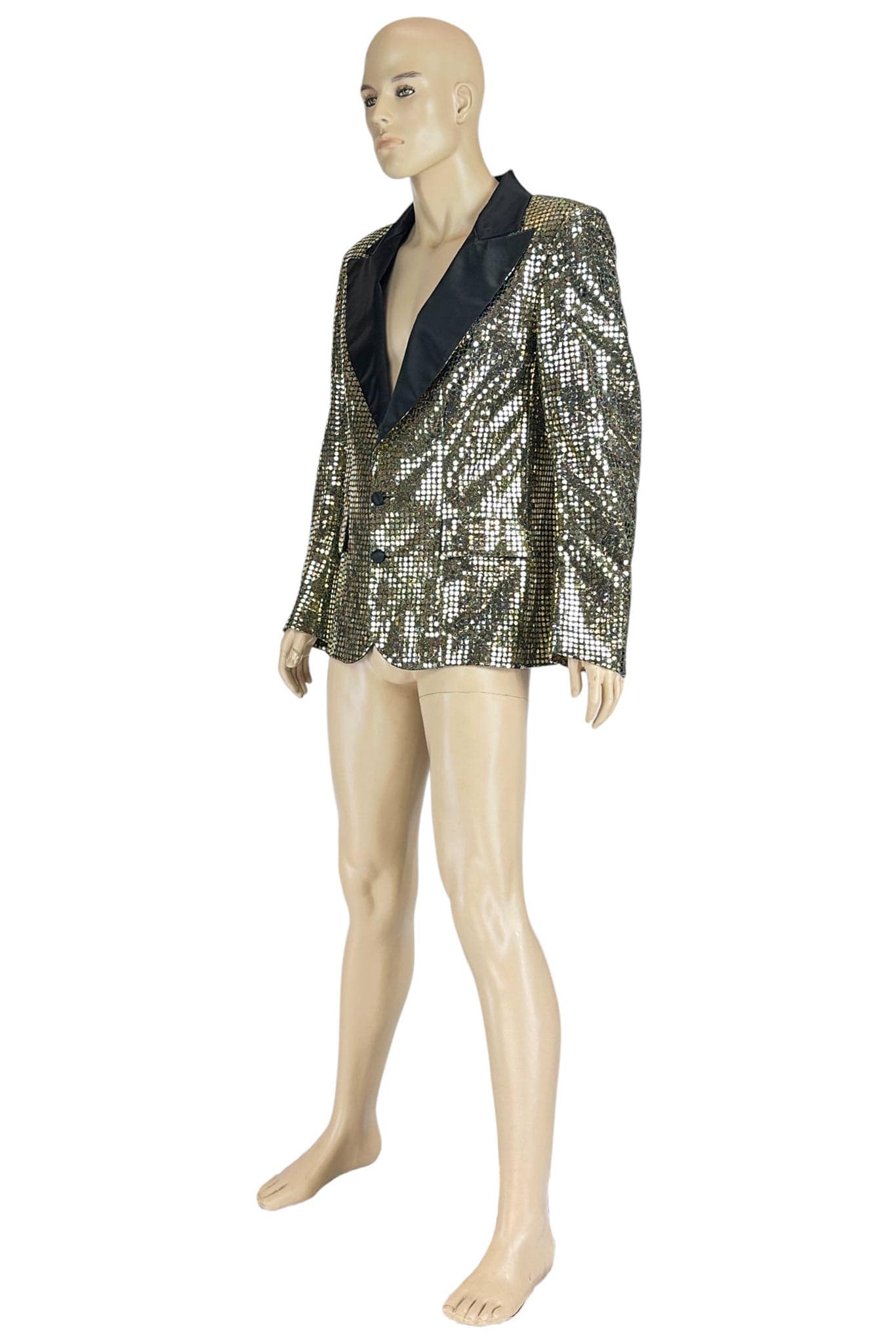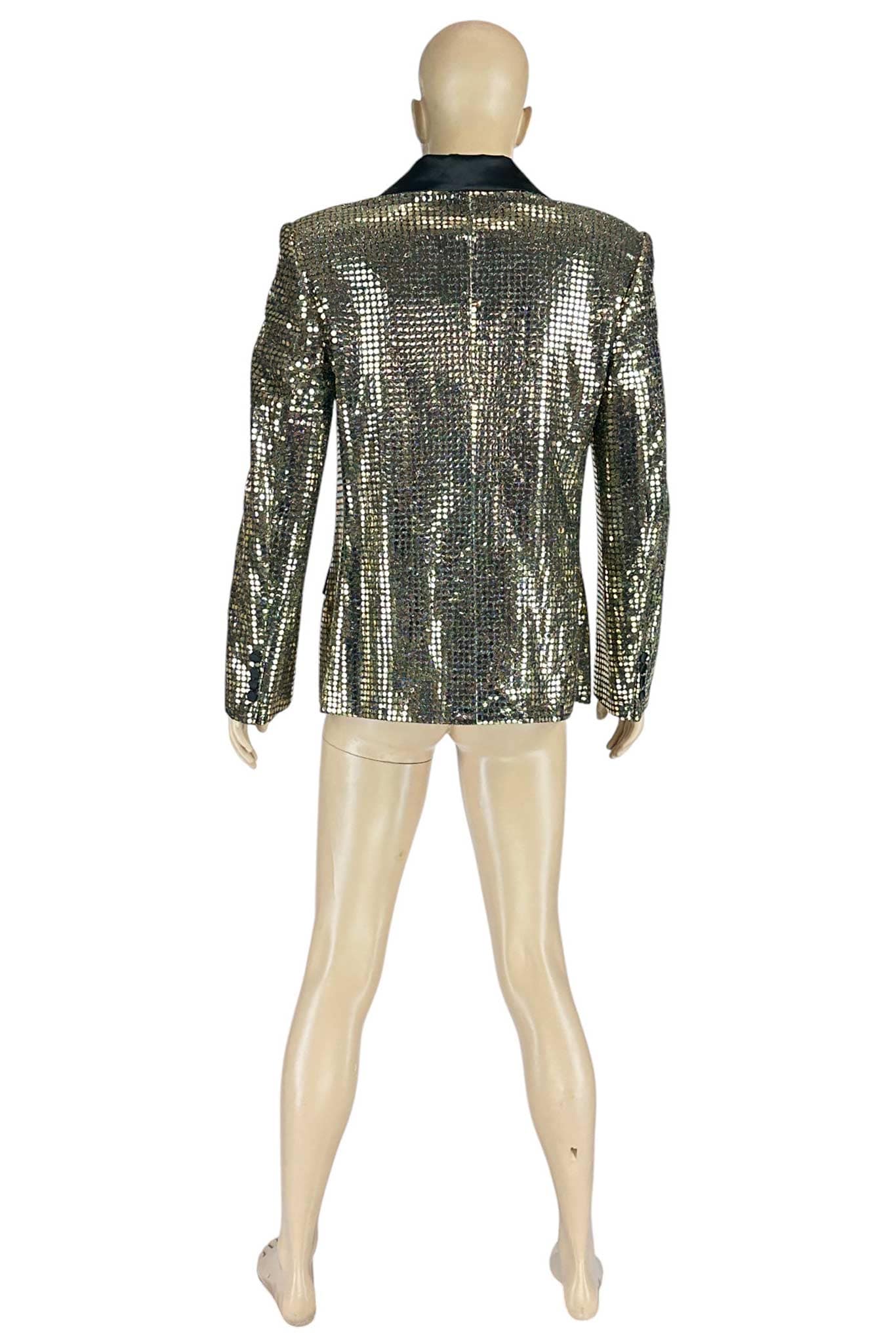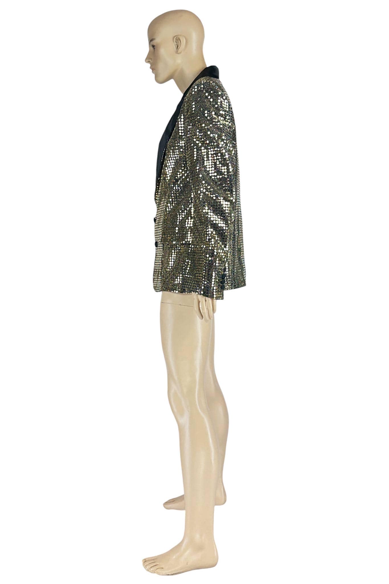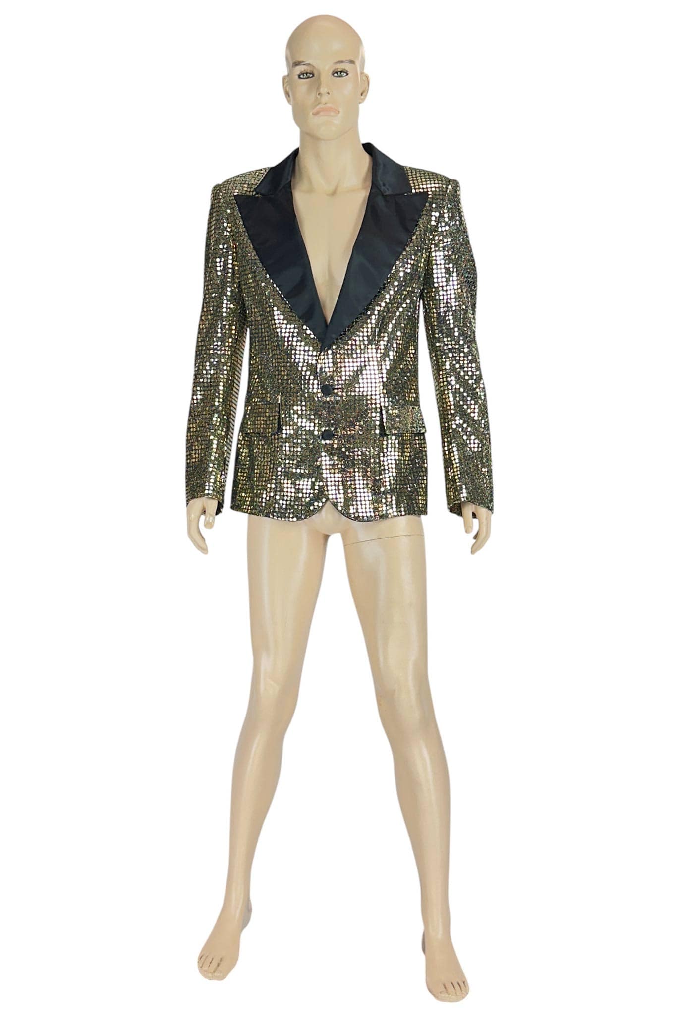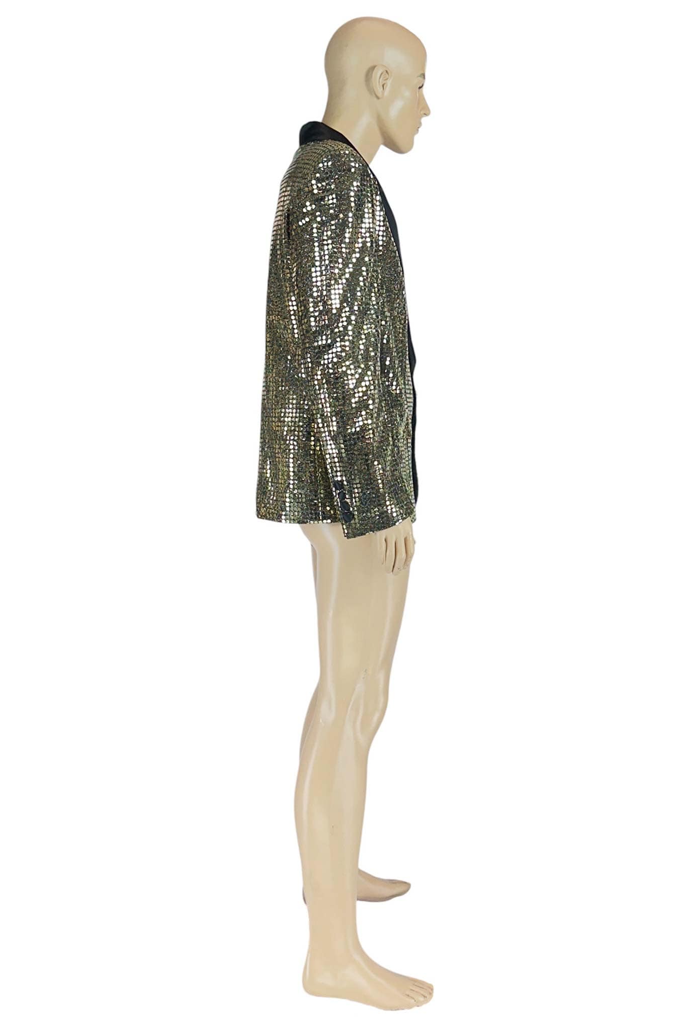 La giacca, disponibile per il noleggio, è stata pensata per chi desidera farsi notare e lasciare il segno. Il design moderno è ispirato alle giacche da palcoscenico degli anni ’70 e ’80, epoca in cui la moda scenica si fondeva con il desiderio di stupire. Effettuare oggi il Noleggio giacca uomo dorata paillettes nere scena significa richiamare quell'epoca d’oro dello show business, reinterpretandola in chiave attuale con materiali di qualità e tagli sartoriali.