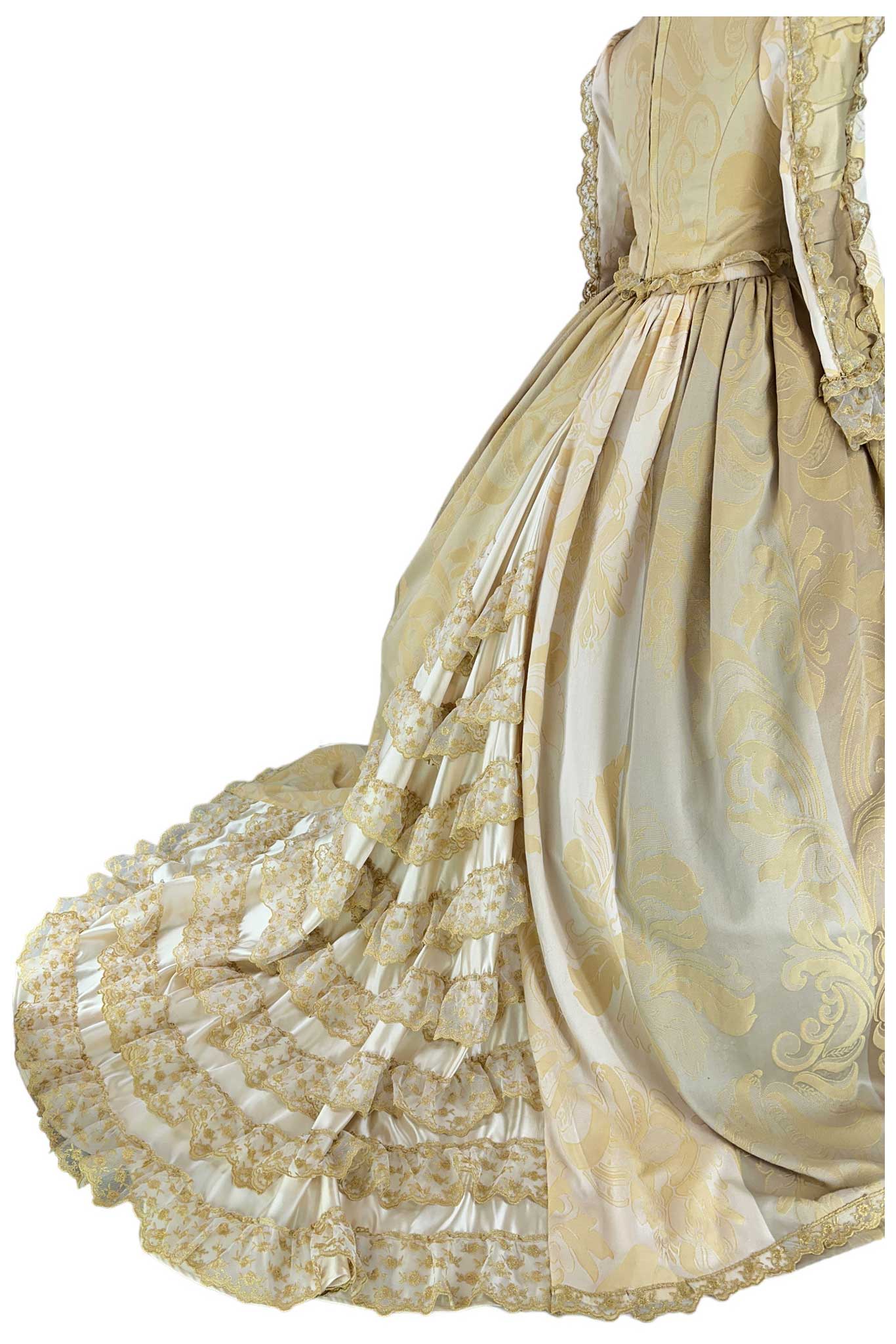 La nostra collezione di abiti storici donna in stile rococò offre una varietà di opzioni, dai corpetti ricamati alle gonne a campana, dai dettagli lussuosi alle silhouette eleganti. Ogni abito è realizzato con cura e attenzione ai dettagli, per garantire un look autentico e suggestivo.