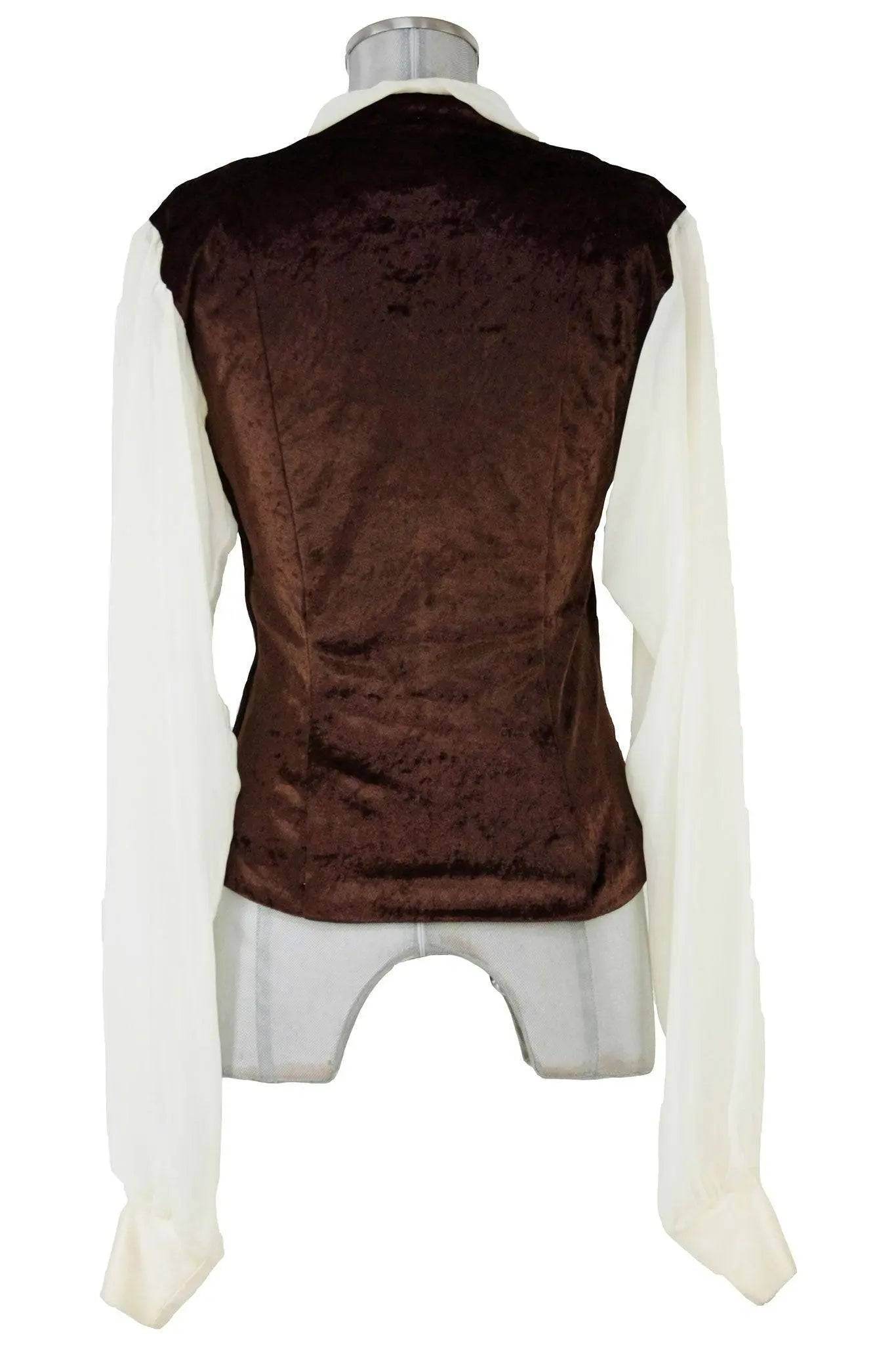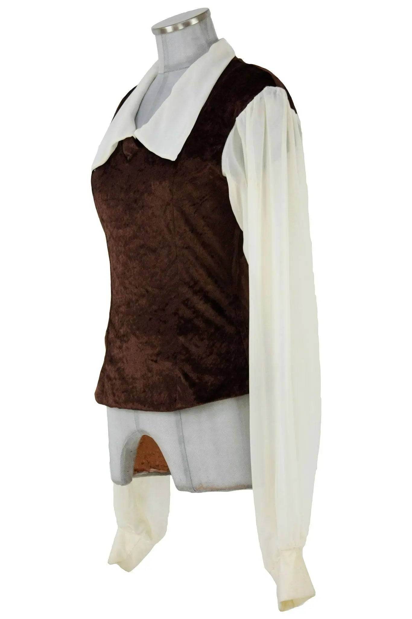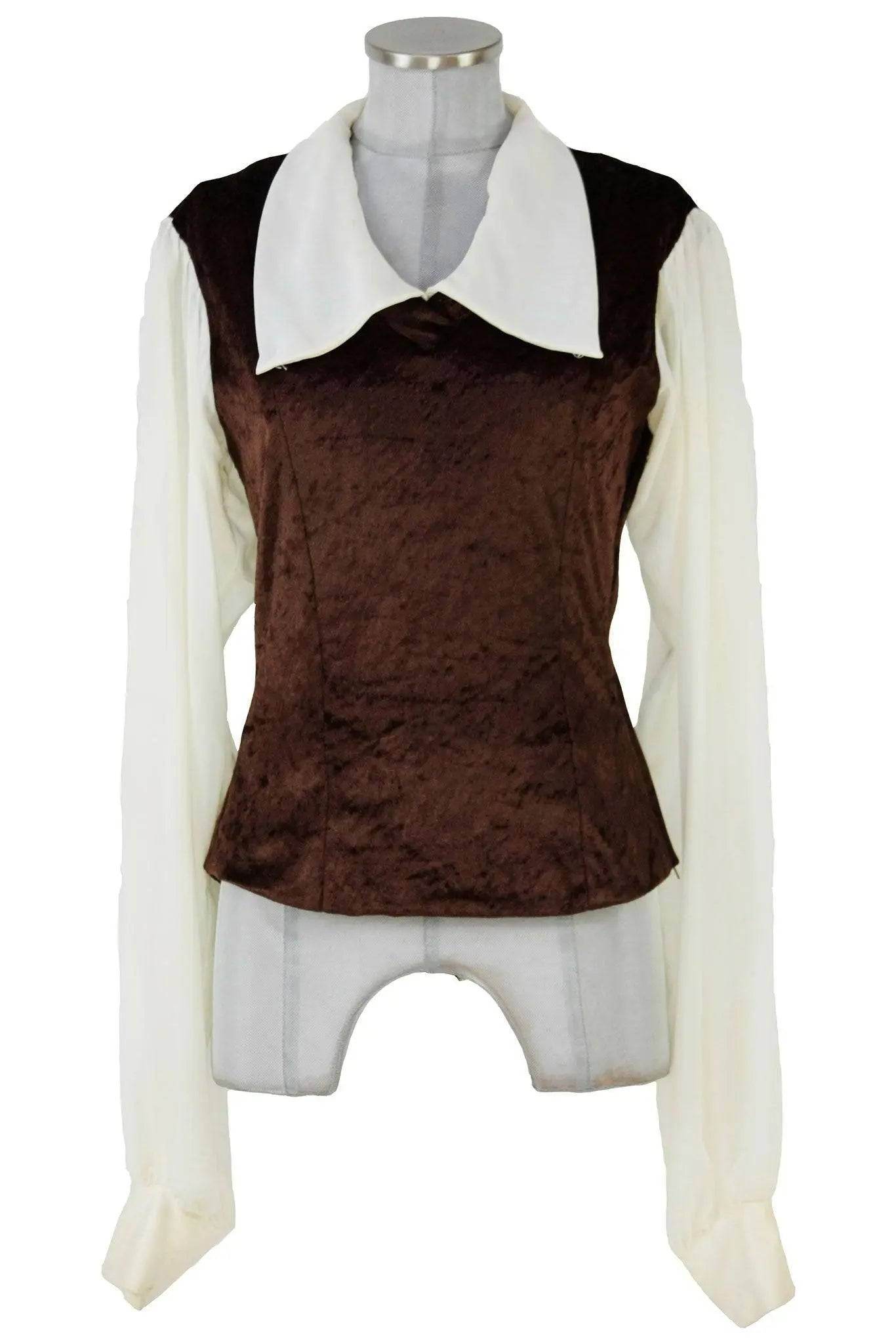 Costume per ballerino classico, da indossare con calzamaglia o eventualmente kilt, composto da giustacuore aderente con pinces in velluto marrone e camicia con colletto ampio. Per balletti senza trama o personaggi di contadini, poeti, guardiacaccia dei principali balletti classici e romantici.